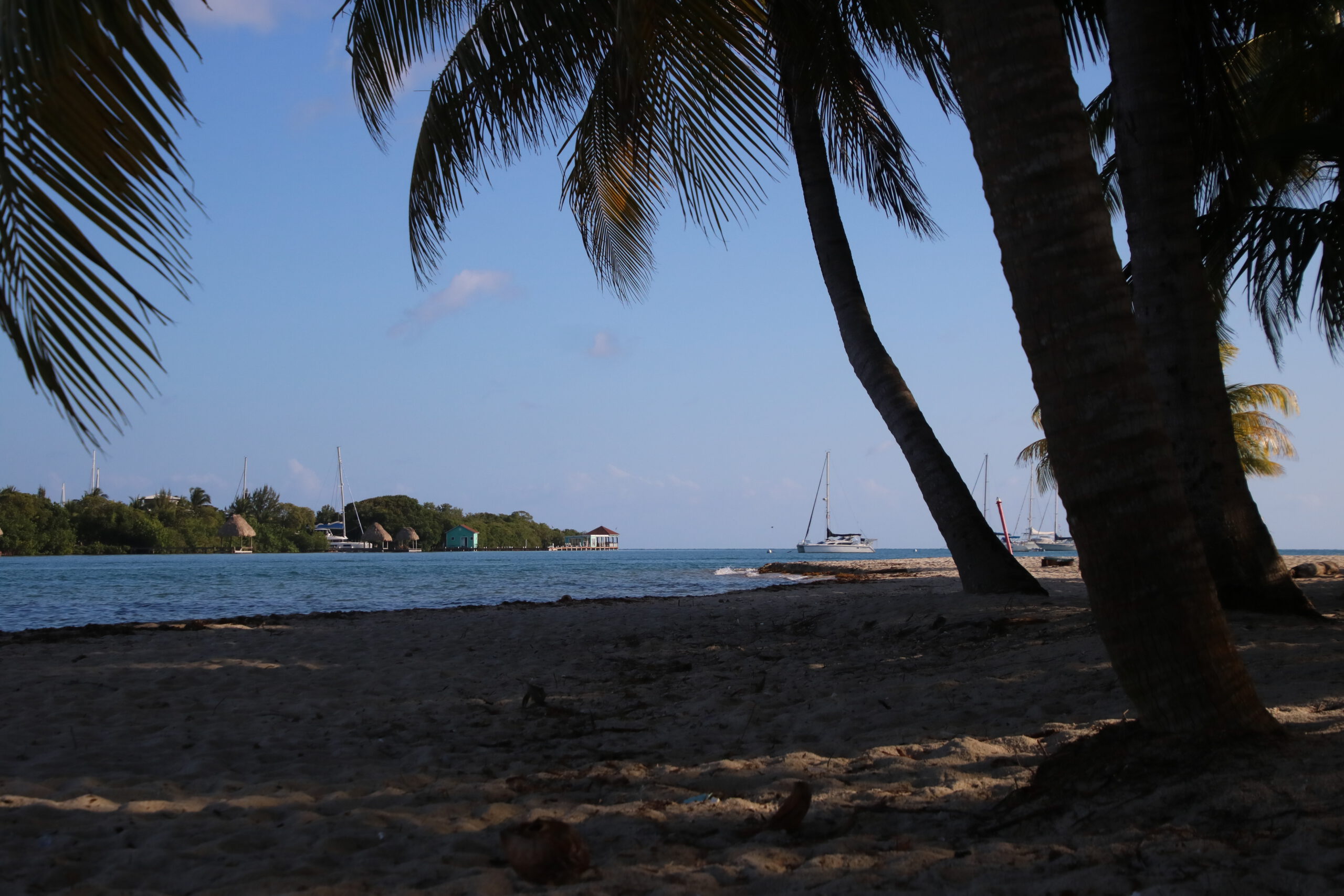 Nach der Bootsfahrt suchen wir uns ein schattiges Plätzchen unter den Palmen am Stadtstrand von Placencia. Ich gehe auch noch ins Wasser und schwimme ein paar Meter – schließlich muss ich ja die Wassertemperatur für das morgige Schnorcheln testen.