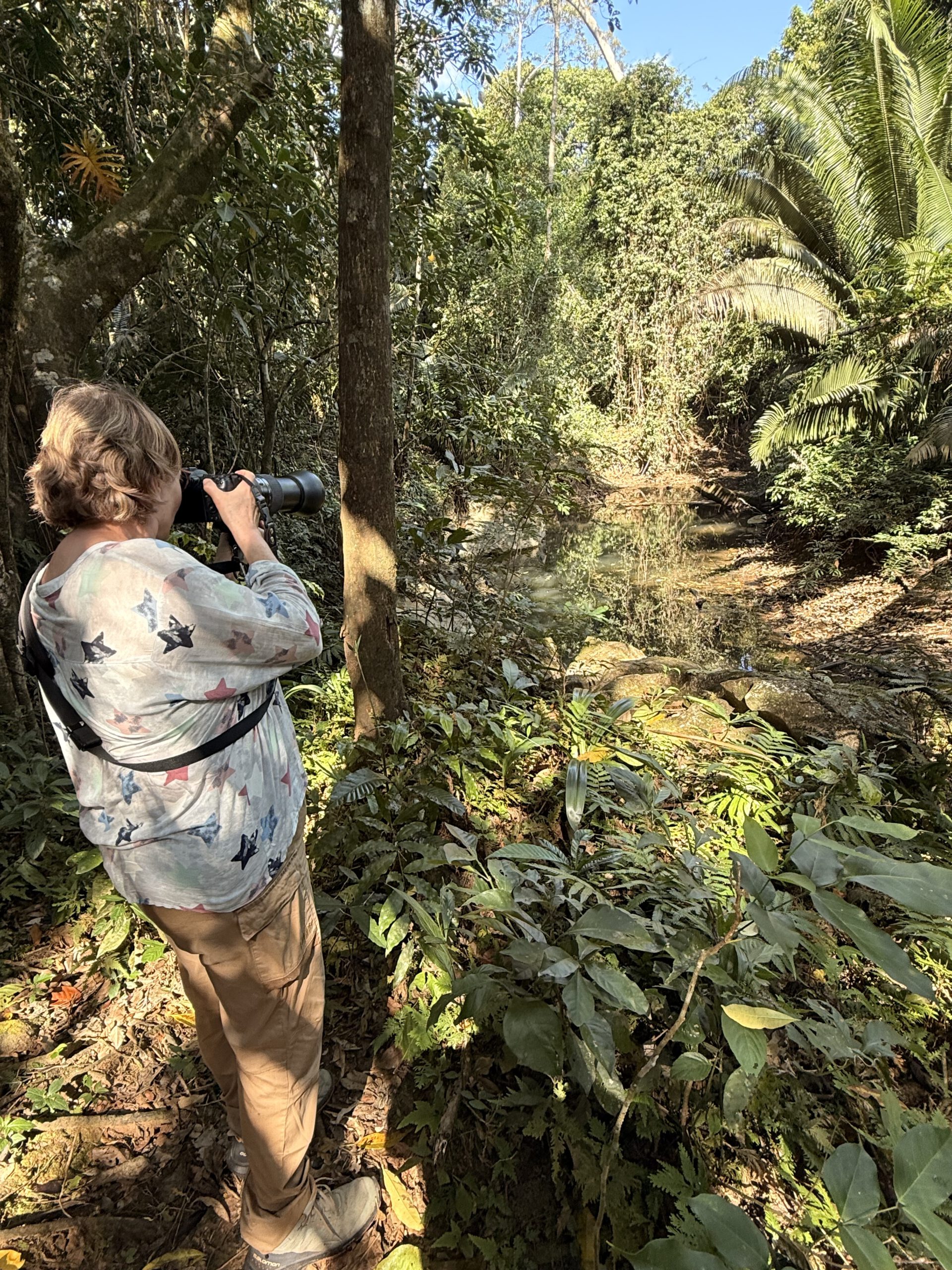 Birder sind Frühaufsteher. Für uns bedeutet das heute ganz konkret: Der Wecker klingelt um 6 Uhr, und wenig später drehen wir unsere erste Runde über das weitläufige Gelände unserer Lodge. Der Vogelgesang ist beeindruckend vielfältig. Oft sind fünf bis zehn Arten gleichzeitig zu hören – ein vielstimmiges Konzert, das den Morgen erfüllt. Leider gelingt es uns wieder einmal nicht, alle Vögel zu entdecken, die wir hören. Dennoch bekommen wir 14 Arten zu Gesicht, und Andrea gelingt es, einige von ihnen wunderbar zu fotografieren. Manche davon sind für uns „Lifer“, also Arten, die wir zum allerersten Mal sehen.