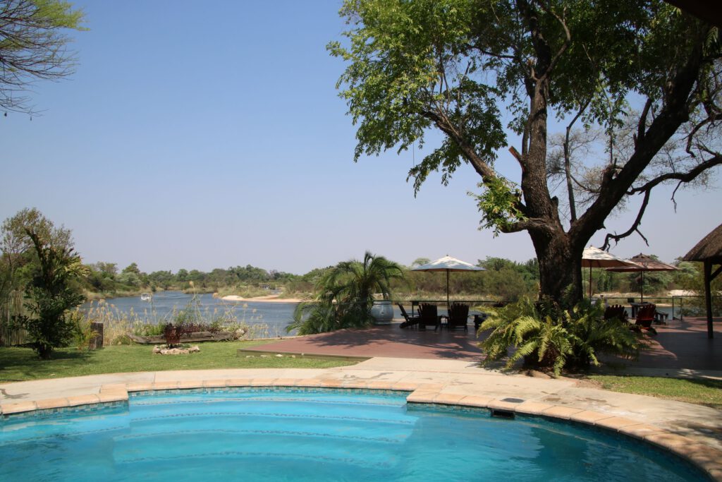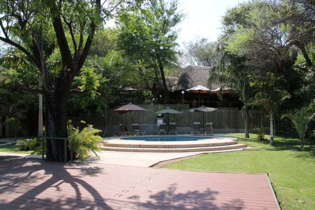 Unser Guide von der Safari gestern hatte uns den Rat gegeben, den Mahango Nationalpark vom frühen Nachmittag bis zum Schließen der Park Gates um 18 Uhr zu besuchen. Den Rat befolgen wir und somit haben wir beim Frühstück alle Zeit der Welt und wir lassen es auch tatsächlich ganz ruhig angehen. Immerhin sind wir schon um 6 Uhr wach geworden und ein langer und ereignisreicher Tag liegt vor uns. Gut gesättigt nach unserem Camper-Frühstück, versuchen wir, die Bilder der letzten Tage auf unsere Blog-Website zu laden. Die Internetverbindung ist aber so schwach und instabil, dass wir das Vorhaben nach zahlreichen Fehlversuchen abbrechen und uns erst mal an den Pool legen, der um diese frühe Uhrzeit noch verwaist ist. Hier ist es sehr schön und wir genießen die Ruhe, lesen ein wenig und Andrea zieht ein paar „Bahnen“ im erfrischenden Nass.