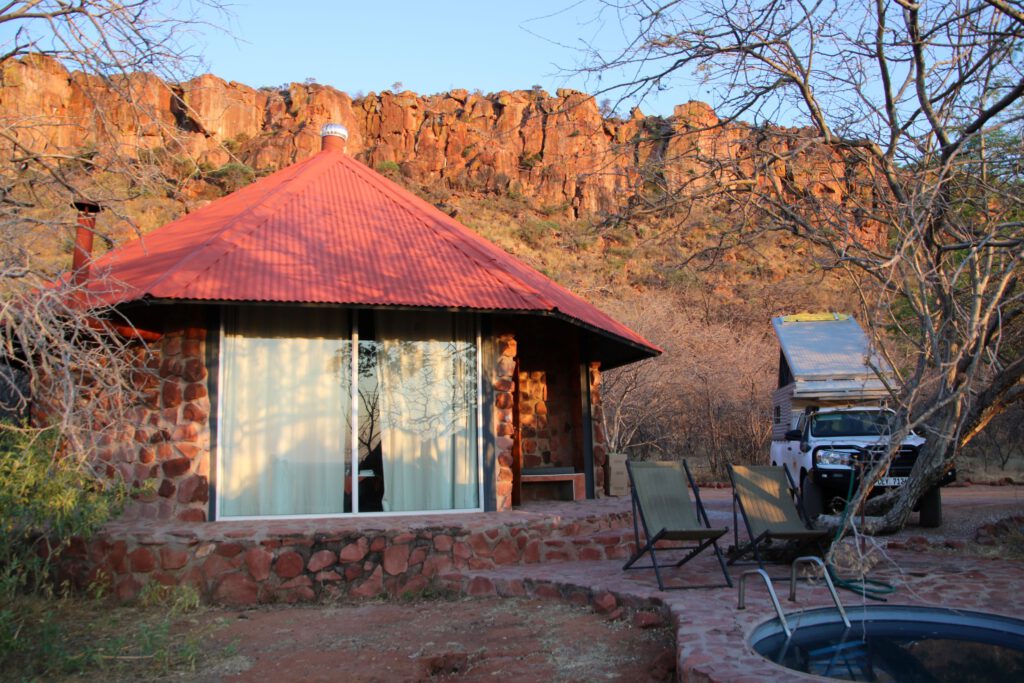 In unserem Waterberg-Plateau-Chalet haben wir wunderbar geschlafen, wenn man mal von der halben Stunde absieht, in der mich zwei Mäuse davon abgehalten hatten. Nachdem ich die Futterquelle (Willkommenskekse in der Verpackung) entdeckt und vor die Tür befördert hatte, war endlich Ruhe.
