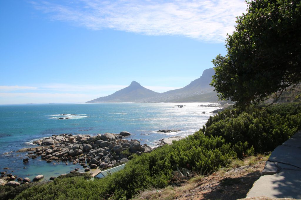 Als Weg dorthin wählen wir die Küstenstraße von Seapoint über Clifton und Campsbay. Unterhalb der Berge des Tafelberggebirges, der Twelve Apostels, fahren wir bei schönstem Wetter an der Küste entlang und genießen immer wieder herrliche Aussichten.