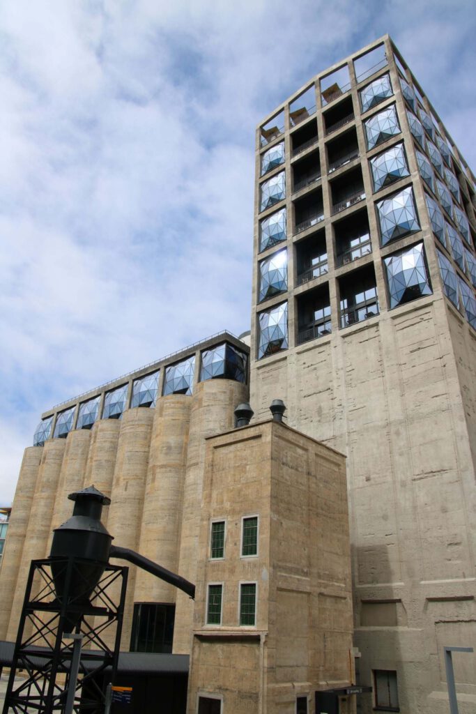 Wir schlafen aus, frühstücken und packen unser Reisegepäck flugtauglich und checken im Breaside B&B aus, lassen aber unser Gepäck noch dort stehen. Wir wollen uns heute das 2007 eröffnete Museum für zeitgenössische afrikanische Kunst anschauen (Zeitz Museum of Contemporary Art Africa). Alleine schon wegen seiner bemerkenswerten Architektur reizt uns dieser Museumsbesuch. Das Gebäude des MOCAA entstand durch die Restaurierung bzw. den Umbau einer ehemaligen Getreidesilo-Anlage. Besoders bemerkenswert ist das riesige Atrium, das aus einem Bündel von 42 eng beieinanderstehenden Betonzylindern von jeweils 30 m Höhe herausgesägt wurde. Dadurch entstanden interessante geometrische Strukturen. Von außen ist das Getreidesilo weitgehend in seiner ursprünglichen Form von 1921 erhalten worden.