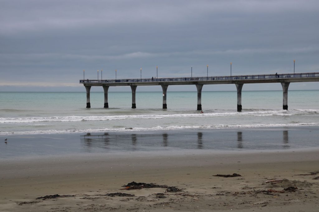 Nach der Weinprobe machen wir uns wieder auf in Richtung CHC und nehmen die Strecke über New Brighton, wo wir ein wenig am Strand promenieren. Schade, dass die Sonne nicht scheint. Die Szenerie könnte ein paar Sonnenstrahlen definitiv brauchen.