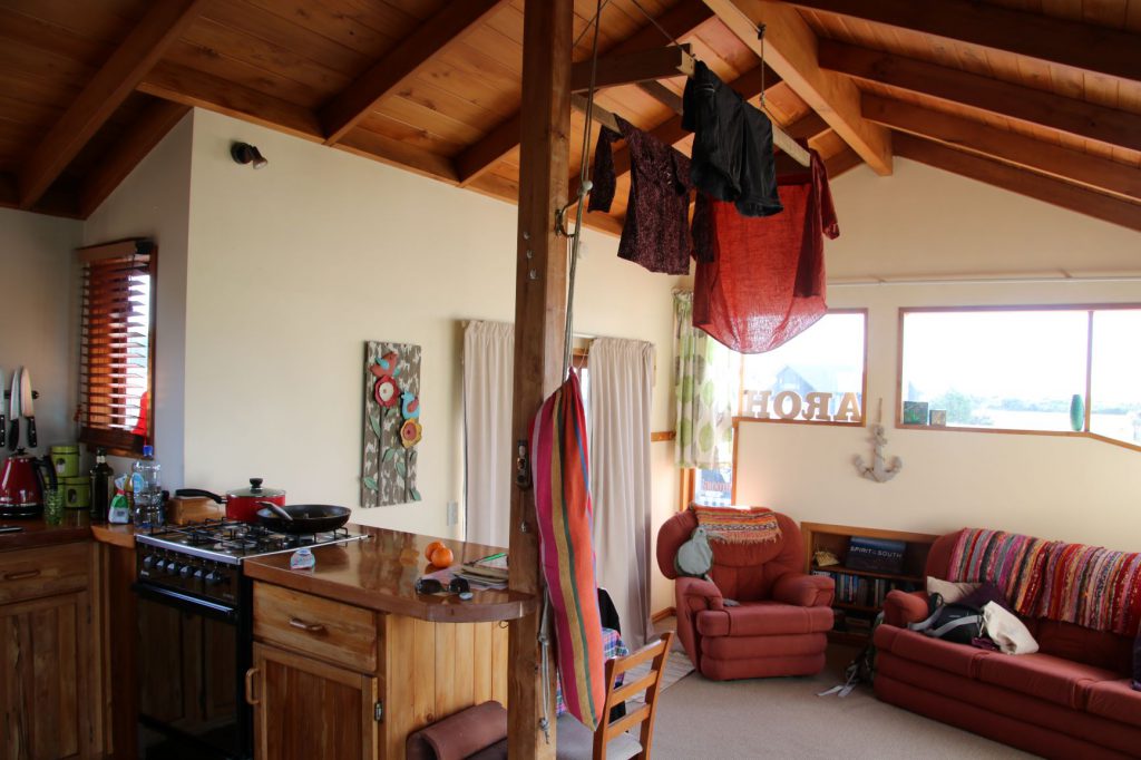 Nach dem Frühstück packen wir also unsere Siebensachen wieder ins Auto und verabschieden uns von unserer liebenswerten Vermieterin Laura, die wir in den zwei Tagen richtig ins Herz geschlossen haben, wegen ihrer lockeren, liebenswerten und unkomplizierten Art. Wir empfehlen jedem, der nach Okarito reisen will: bucht bei Air B&B das Unique Wooden House! Es ist einzigartig!