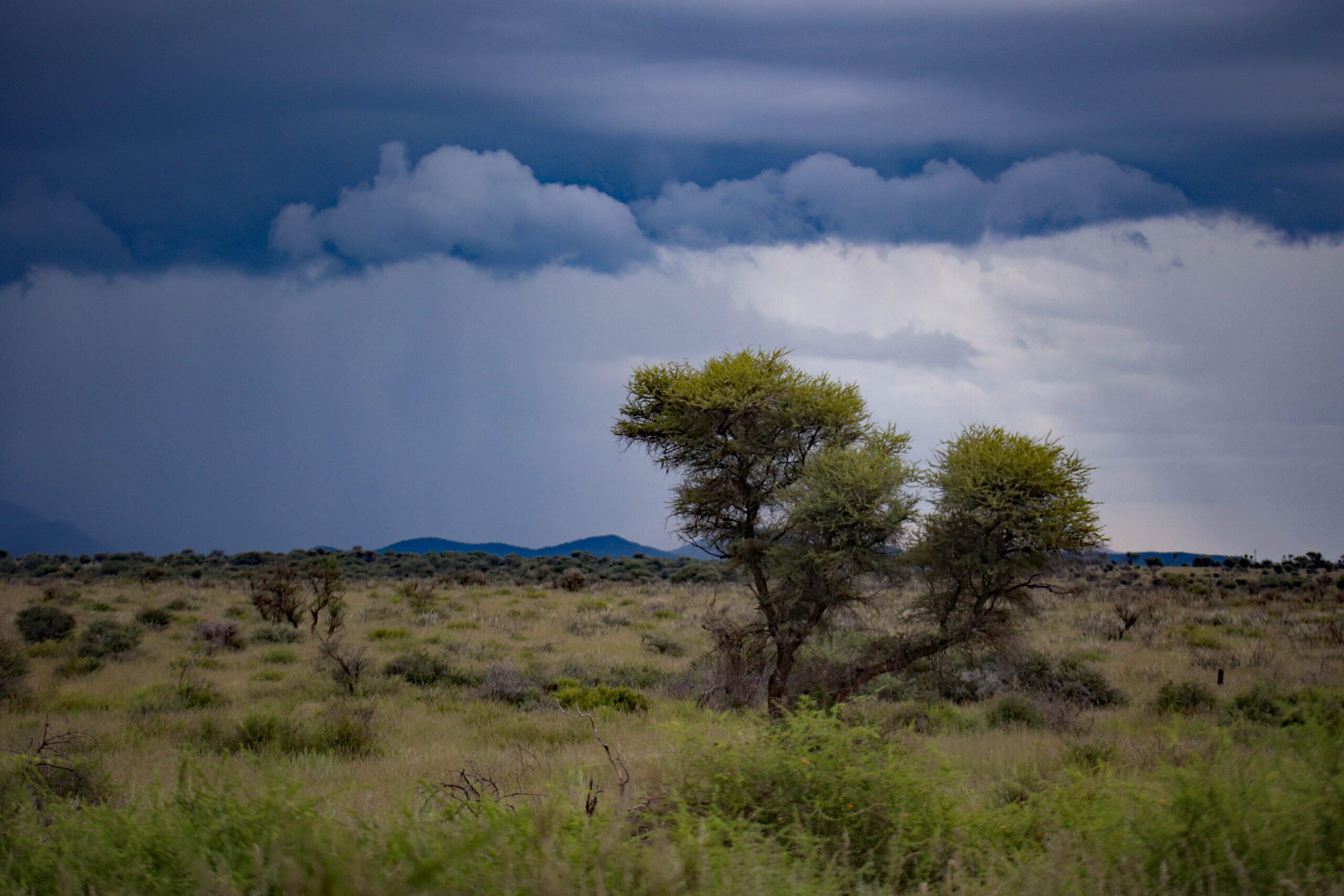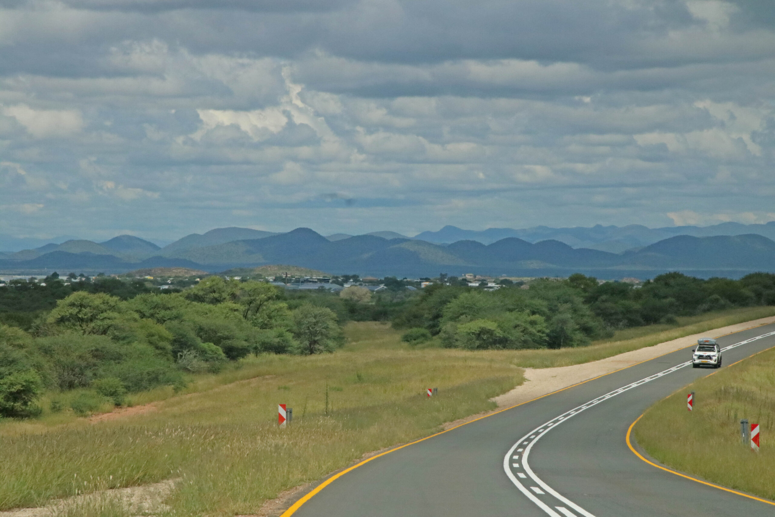 Weitere 375 Kilometer Teerstraße liegen vor uns. Der Wetterbericht spricht von 100% Regenwahrscheinlichkeit und Niederschlägen von morgens bis abends. Gut, dass es nicht so kommt wie vorhergesagt und dass wir die außergewöhnlich schöne namibische Landschaft genießen können, die wir durchfahren.