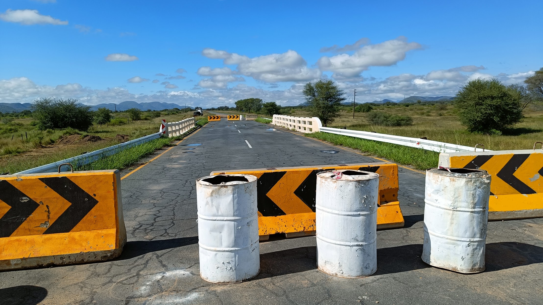 Eigentlich sind es heute nur noch 104 Kilometer bis nach Windhoek, wo wir unsere Bushcamper zurückgeben. Allerdings ist unvermittelt die B1 wegen einer defekten Brücke gesperrt, so dass wir einen kleinen Umweg über Okahandja nehmen müssen.
