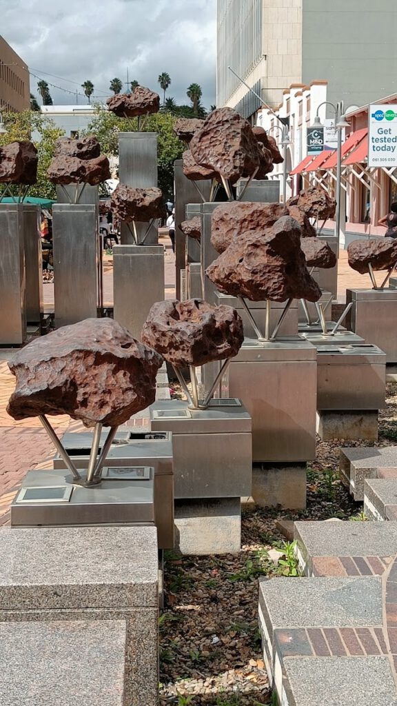 Auf der Dachterrasse des Independence Museum trinken wir einen Kaffee, gehen dann zum Namibia Craft Centre, dem Zentrum für namibisches Kunsthandwerk mit handgefertigtem Schmuck, Töpferwaren, etc. Im angegliederten Bistro nehmen wir einen leichten Lunch ein, bevor wir die Camper zurückgeben.