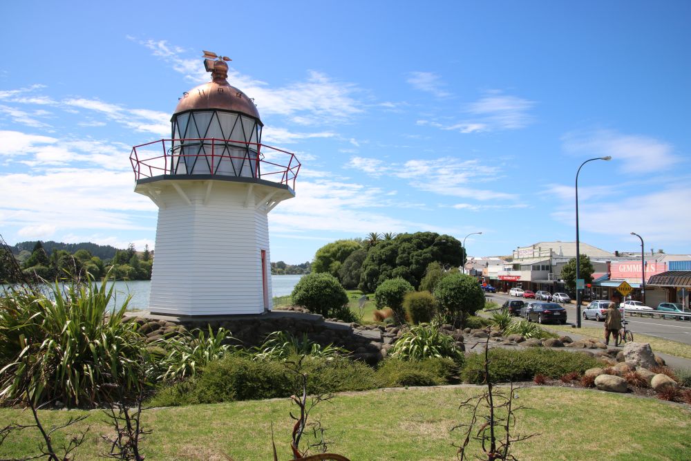 Nach 2 Stunden kommen wir in den Ort Wairoa, wo wir einen kurzen Stopp machen. Das Städtchen liegt an einer Flussmündung und macht mit seinen wenigen alten Häusern und ein paar Läden eigentlich nicht besonders viel her, aber die Uferpromenade am Fluss entlang ist schön angelegt und der strahlende Sonnenschein bei 25 Grad sorgt ohnehin für die richtige Urlaubsstimmung.