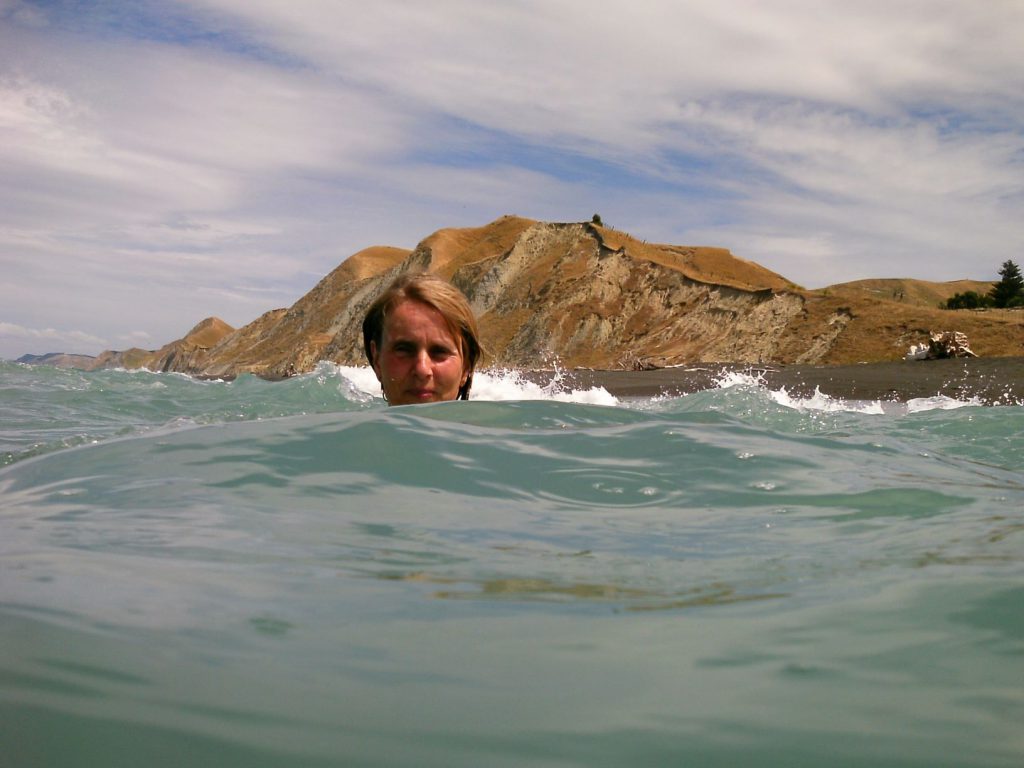 Das Wasser ist gar nicht so kalt wie befürchtet und die Wellen halten sich in Grenzen, so dass das Bad in den Fluten des Pazifik richtig Laune macht. Keine Ahnung, was den Reiz ausmacht, einen riesigen Strand und unendlich viel Meer ganz alleine für sich zu haben. Es ist halt einfach so und wir genießen es.