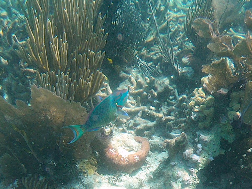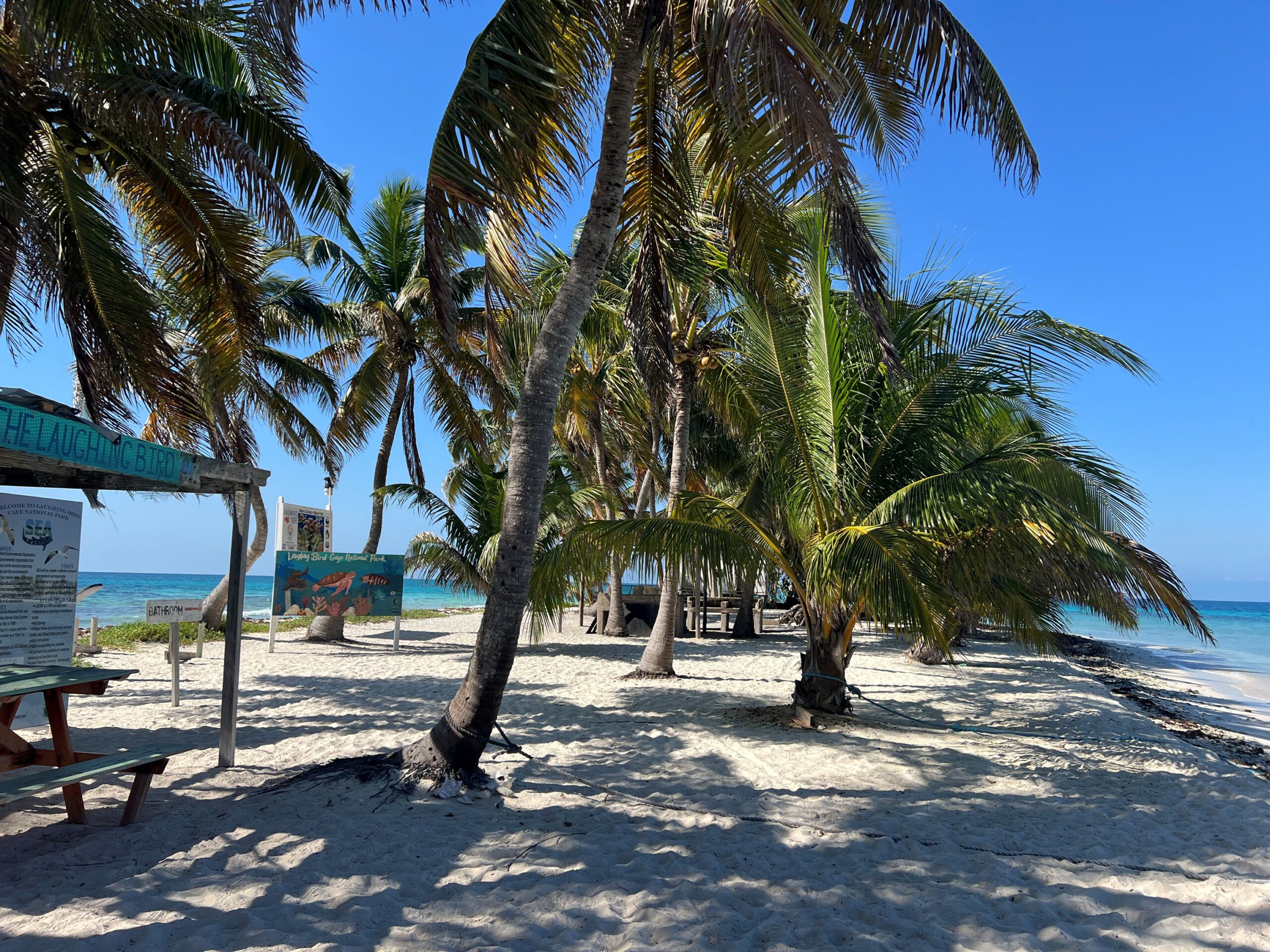 Laughing Bird Caye gehört zum zweitgrößten Riff der Welt, dem Belize Barrier Reef. Das Schutzgebiet zählt seit 1996 zum UNESCO-Weltnaturerbe. Die Insel und ihre Umgebung sind bekannt für ein vergleichsweise gut erhaltenes Korallenriff, das ein beliebtes Schnorchelgebiet ist. Seit etwa 2006 engagiert sich die lokale NGO Fragments of Hope für die Zucht und gezielte Auspflanzung von Korallen, um das Riff unter anderem nach den Folgen der Korallenbleiche zu stärken. Diese Maßnahmen haben maßgeblich zur Erholung der Korallenbestände beigetragen. Genau deshalb haben wir hier unsere erste Schnorcheltour geplant.