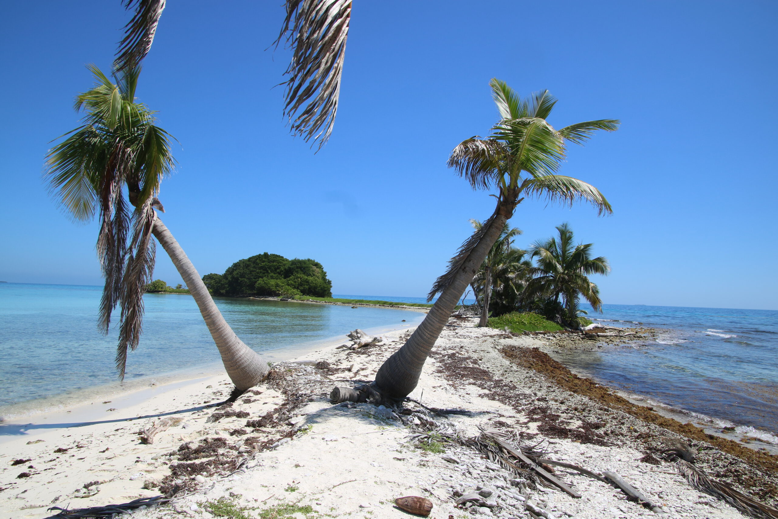 Nun bleibt uns noch etwas Zeit, Laughing Bird Caye ein wenig zu erkunden und natürlich traumhafte Fotos zu machen. Genau so stellt man sich eine karibische Koralleninsel vor: feiner, weißer Sand, sanft wiegende Palmen, glasklares Wasser, das in hellem Türkis schimmert, und darüber ein wolkenloser Himmel, der die Szenerie strahlend blau überspannt.