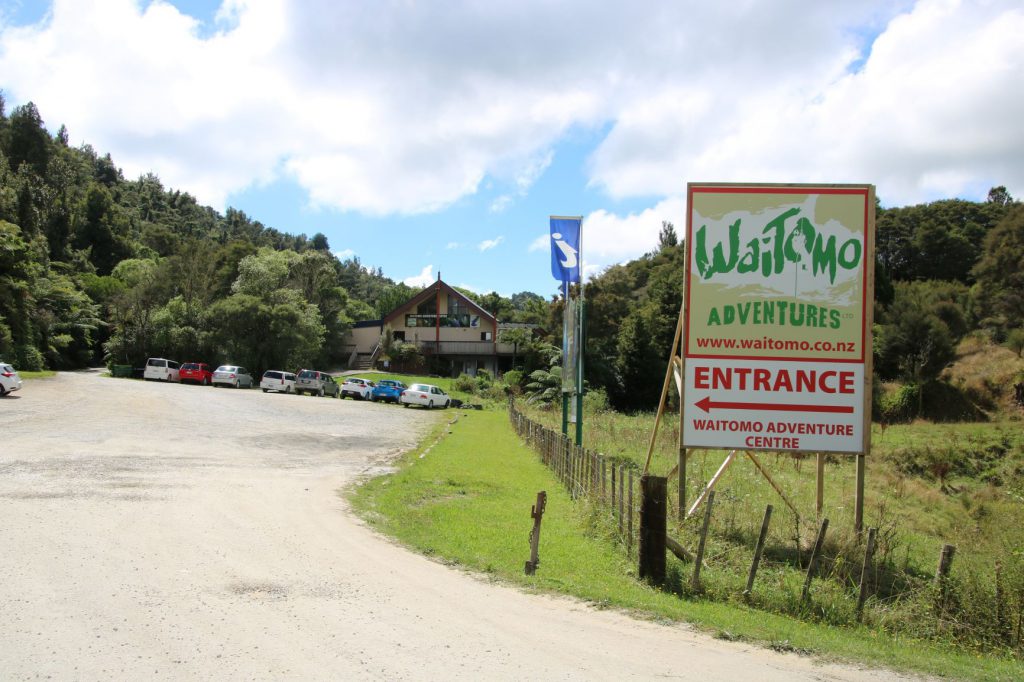 Endlich geht sie los, unser Lost World Tour, ein vierstündiges Adventure in einer Karsthöhle. Mit einem Van wird unsere Gruppe, also Andrea und ich sowie zwei junge Österreicherinnen, zum Startpunkt der Tour chauffiert. Dort werden wir mit blauen Overalls und weißen Gummistiefeln eingekleidet und Gurtzeug angelegt und Helme mit Stirnlampe aufgesetzt. Danach gibt es ein Sicherheitstraining, bei dem wir lernen unsere Karabiner an den Fixseilen korrekt zu handhaben. Als wir das alles verstanden haben, kann die eigentliche Tour beginnen. Es ist uns schon ein wenig mulmig, denn wir wissen, dass es mit einem Abseilen in 100 Meter Tiefe startet. Unser Guide, Ian, führt uns auf eine Plattform über der Abbruchkante, von der aus wir uns mit den Seilen verbinden, die lose in die Tiefe hinabhängen. Ein schüchterner Blick in den Abgrund, aus dem der Fluss Mangapu herauftönt, und es wird uns klar: das ist wirklich verdammt tief! Auch hier werden wir von Ian gut eingewiesen, wie wir die Geschwindigkeit, mit der wir am Seil hinabgleiten, regulieren können. Und los geht es!