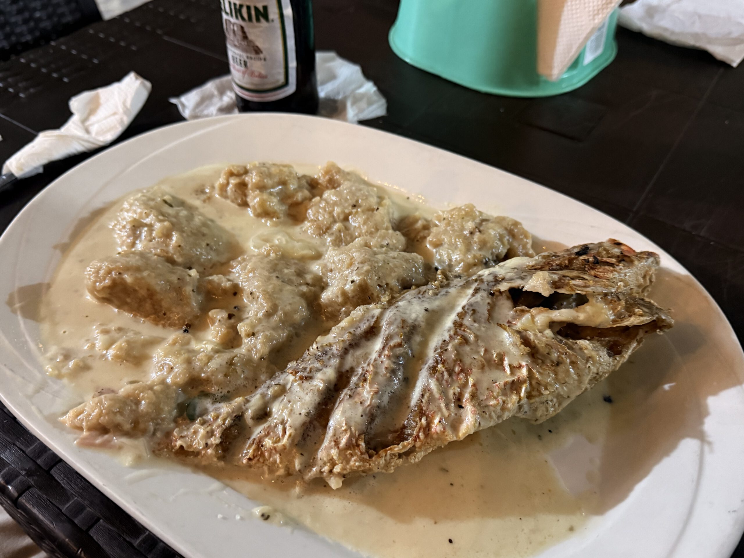 Nach der Kajaktour bleiben wir noch eine Weile am nahegelegenen Strand. Wir nutzen die Zeit, um unsere nass gewordenen Klamotten zu trocknen und die wunderschöne Landschaft zu genießen. Wenn da nur nicht der Müll wäre, der hier achtlos weggeworfen wird und das Meeresufer und den Strand verschmutzt. Leider ist das kein Einzelfall – auch an vielen anderen Orten, die wir auf dieser Reise bereits besucht haben, ist uns dieses Problem immer wieder begegnet.