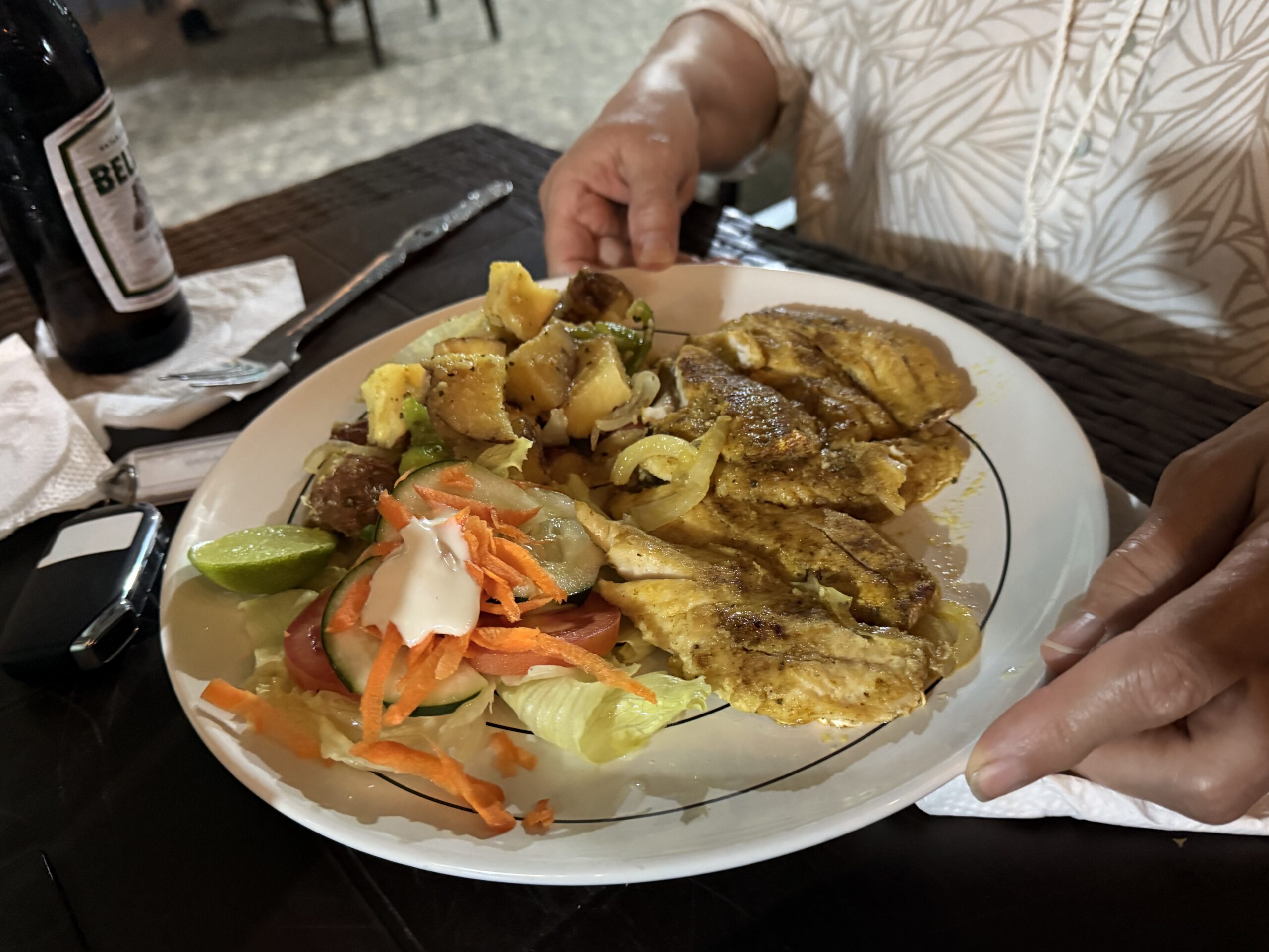 Der Rest des Tages steht ganz im Zeichen der Erholung: ein wenig Schlaf nachholen, später noch einmal an den nahen Strand gehen, im Schatten liegen und in unseren Büchern lesen. Am Abend machen wir uns schließlich auf den Weg zum Abendessen in das Garifuna-Restaurant „Innie’s“ – mehr Programm braucht es heute nicht.