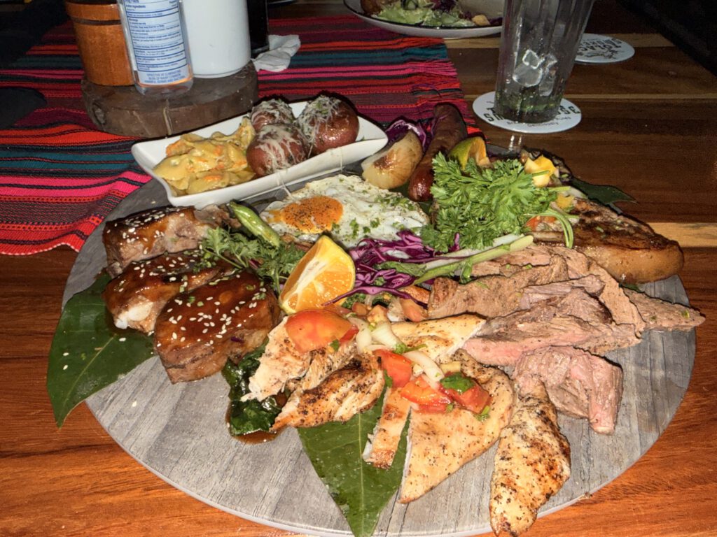 Duschen, umziehen, ein wenig ausruhen und den Ablauf für den kommenden Tag organisieren, dann fahren wir ins nahegelegene Restaurant „Tolaka Smokehouse“ wo wir gut zu Abend essen. Andrea wählt Hähnchenfilet mit Knoblauchsoße und ich esse mich an einer überdimensionierten Fleischplatte satt.