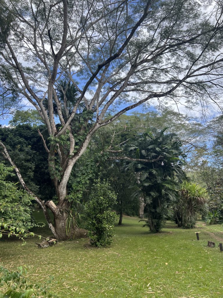 Hier gefällt es uns ausgesprochen gut. Wir sind ganz fasziniert von den vielen unterschiedlichen Eindrücken und den verschiedenen Gartenbereichen. Mal gehen wir durch eine Anlage mit Obstbäumen aus aller Welt, dann durch ursprünglichen Regenwald, anschließend durch einen Bambushain oder einen Palmengarten. Das Birdwatching wird hier fast zur Nebensache. Eine besondere „Einlage“ gibt übrigens eine Horde Brüllaffen, die aus den Baumwipfeln ein wahrhaft ohrenbetäubendes Gebrüll von sich geben. Sehr beeindruckend! Mehr als dreieinhalb Stunden halten wir uns hier auf, bevor wir (ein wenig schlapp von der Hitze) den Heimweg antreten.
