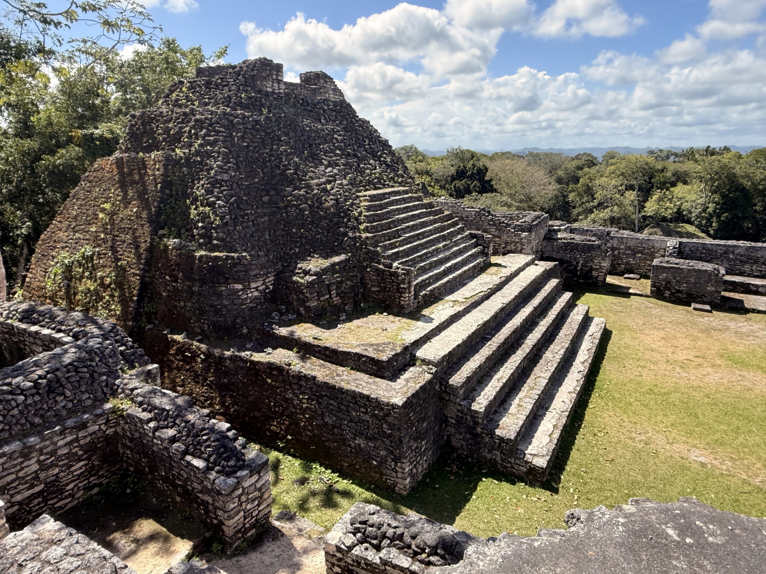 Caracol fasziniert uns allein schon durch seine schiere Größe, aber auch durch die – im Vergleich zu den bisher besuchten Monumenten – deutlich höhere Komplexität. Hier lassen sich wesentlich mehr architektonische Strukturen erkennen und nicht nur Steinhaufen wie in Lubaantun oder einfache Pyramiden wie in Cahal Pech.