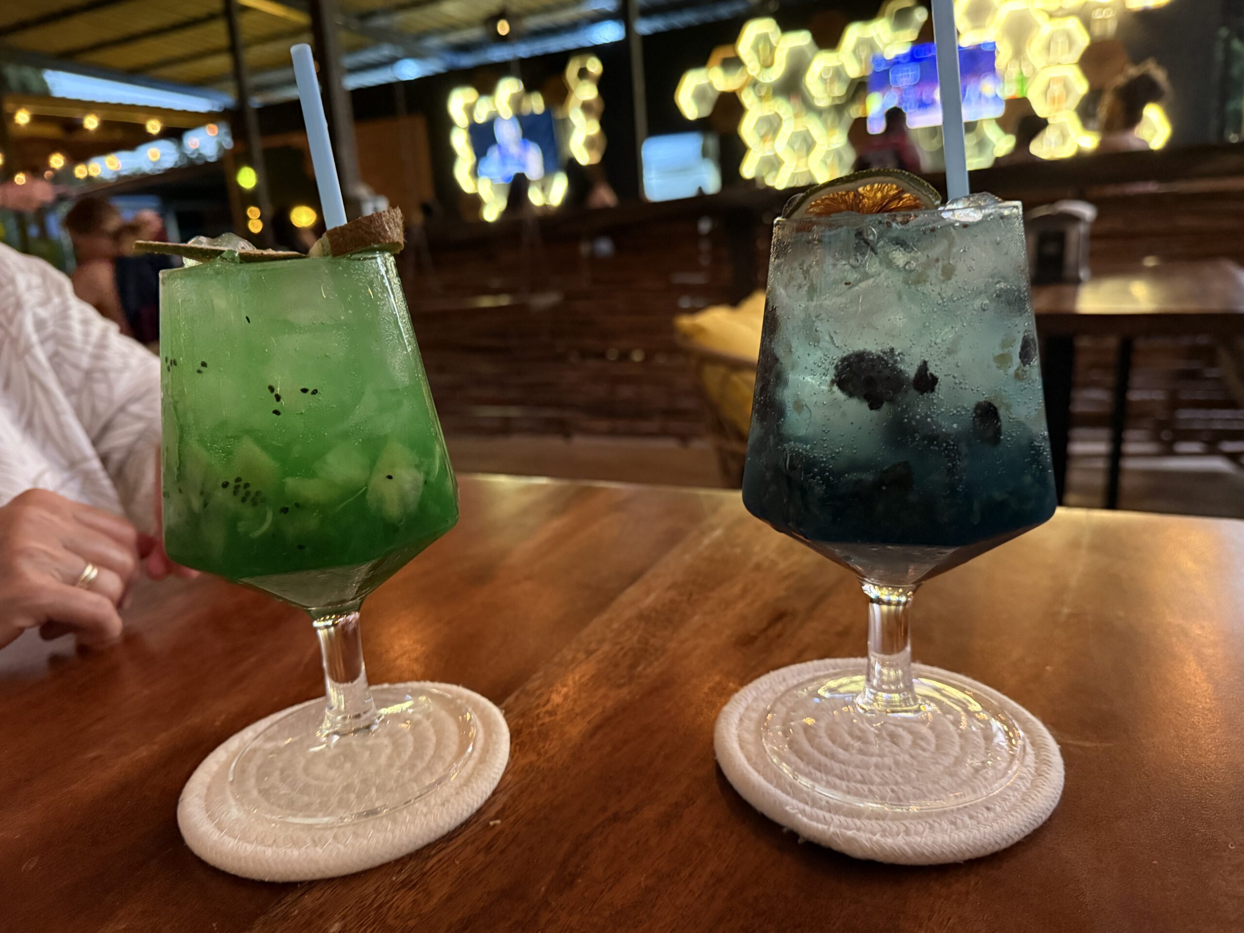 Nach einer erfrischenden Dusche machen wir uns auf den Weg ins nahe gelegene „The Chief’s Garden“, eine Mischung aus cooler Lounge Bar und „Restaurant“. Mit Garnelen- bzw. Hähnchenspießen und alkoholfreien Drinks beschließen wir diesen entspannten Tag.