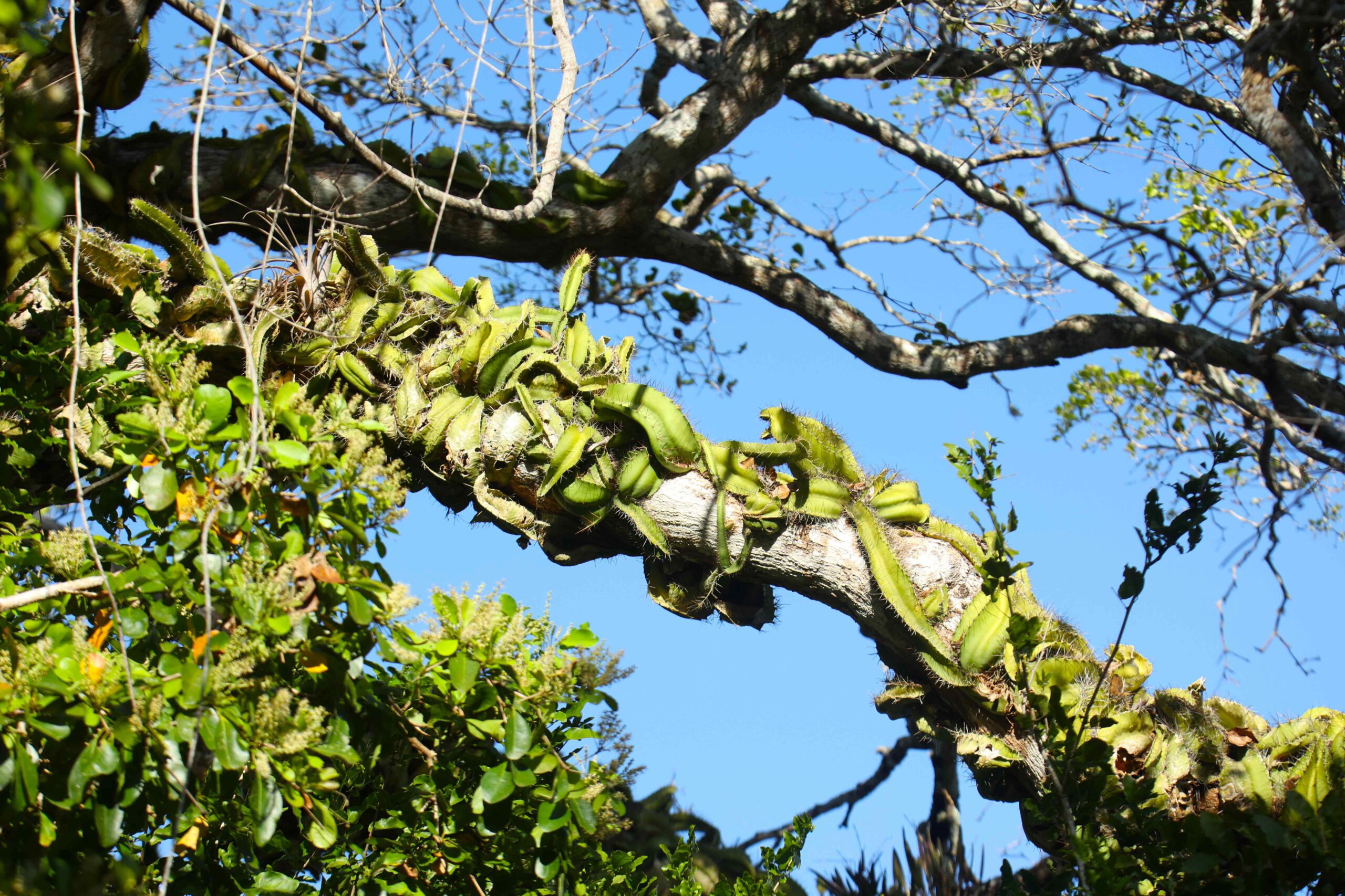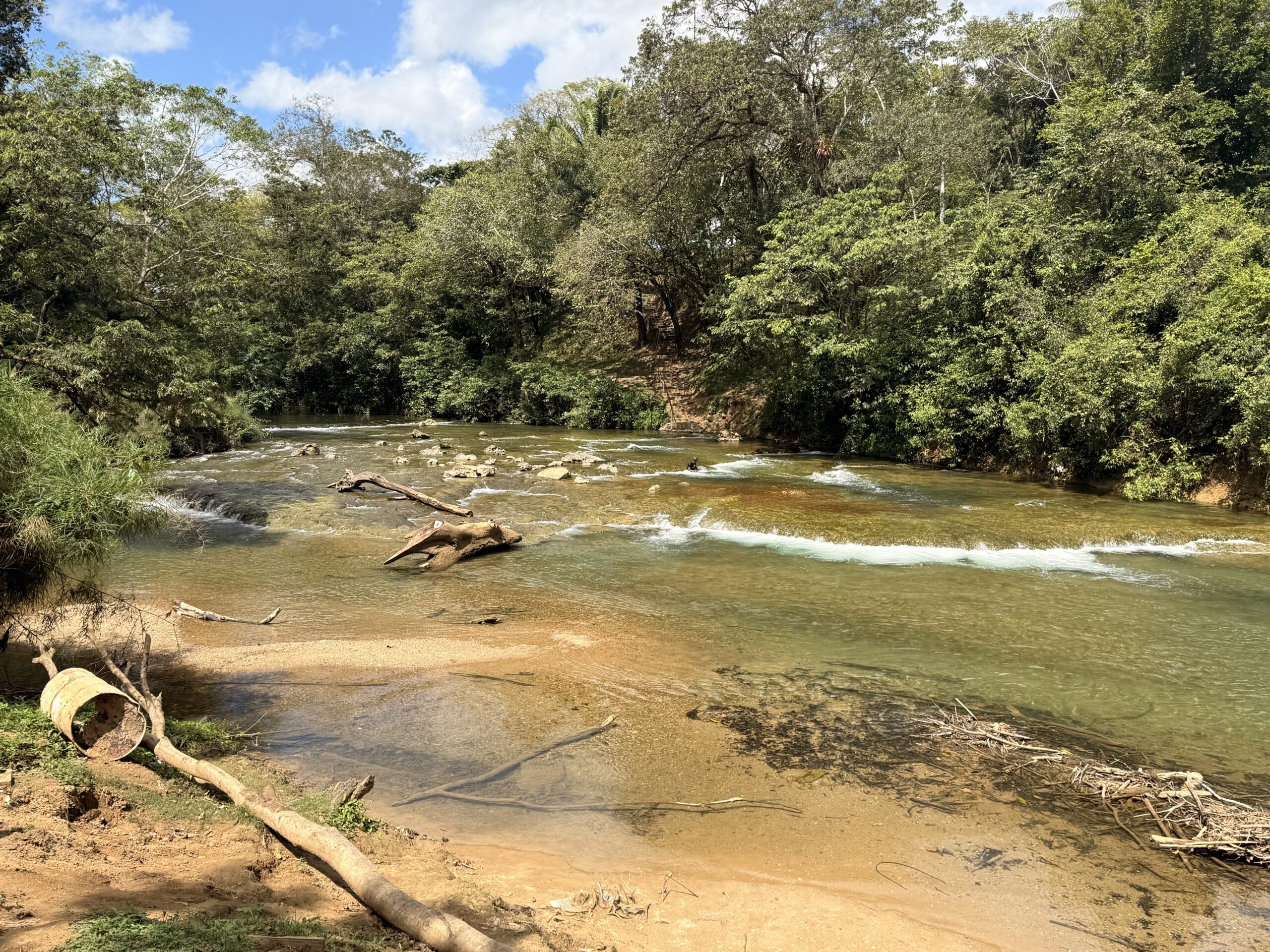 Nur etwa 30 Kilometer weiter legen wir unseren nächsten Stopp ein: den Guanacaste-Nationalpark am Stadtrand der Hauptstadt Belmopan. Der Park ist winzig – und leider auch nicht besonders gut in Schuss. Die Aussichtsplattformen sind wegen ihres maroden Zustands gesperrt, und eine Brücke darf ebenfalls nicht betreten werden, weil Einsturzgefahr besteht. Trotzdem lohnt sich der Besuch. Rund zweieinhalb Stunden verbringen wir im Park und laufen dabei alle Trails ab, die er zu bieten hat.
