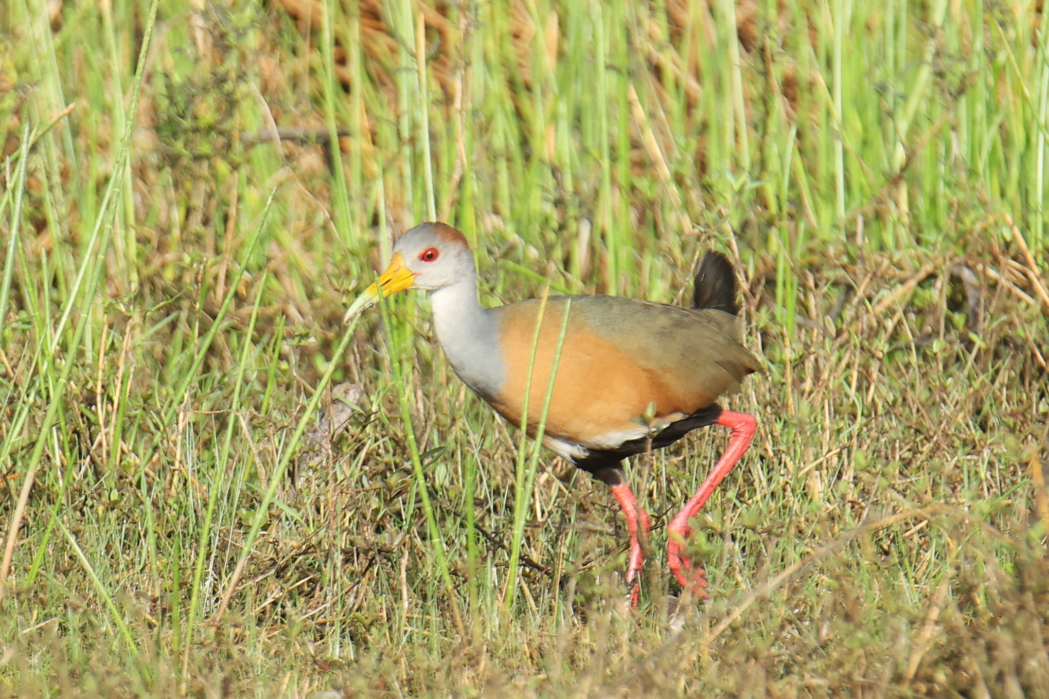 Gegen 11 Uhr setzen wir uns gut gestärkt auf unsere kleine Terrasse und verbringen die nächste Stunde mit Vogelbeobachtung auf der Lagune (W) und Sichtung der morgendlichen Fotoausbeute (A) und machen uns gut eine Stunde später trotz mittlerweile troischer Temperatur und Luftfeuchtigkeit auf den Weg in den „Ort“. Will heißen: wir spazieren in einem der Temperatur angemessenen Tempo den staubigen Pfad entlang und halten dabei nach weiteren Vögeln Ausschau. Ich bin ehrlich: für die gut 3,5 km benötigen wir 2 ¼ Stunden, was aber in erster Linie an den vielen Vögeln liegt, die wir leider oft nur hören, aber von Zeit zu Zeit auch im Gebüsch oder auf Zäunen entdecken. Und gerastet wird natürlich auch: im Schatten eines improvisierten Pavillons vor dem Dorf-Supermarkt gönnen wir uns zwei Erfrischungsgetränke, bevor wir den Rückweg antreten.