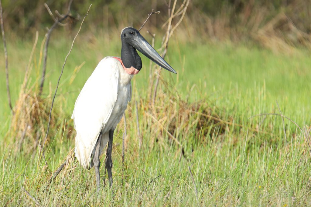 Aber das Beste hat sich unser Guide Rupert für den Schluss aufgehoben: den Jabiru! Er ist mit seinen 1,40 Meter Größe und ca. 2,50 Meter Spannweite der mit Abstand größte Storch weltweit. Zugegebenermaßen ist er keine Schönheit mit seinem schwarzen, fast kahlen Kopf und dem mächtigen, leicht klaffenden Schnabel. Aber wir drei Birder werden ganz andächtig beim Anblick dieses imposanten Vogels, denn es gibt nur wenige Orte, an denen dieser seltene Vogel zu beobachten ist.