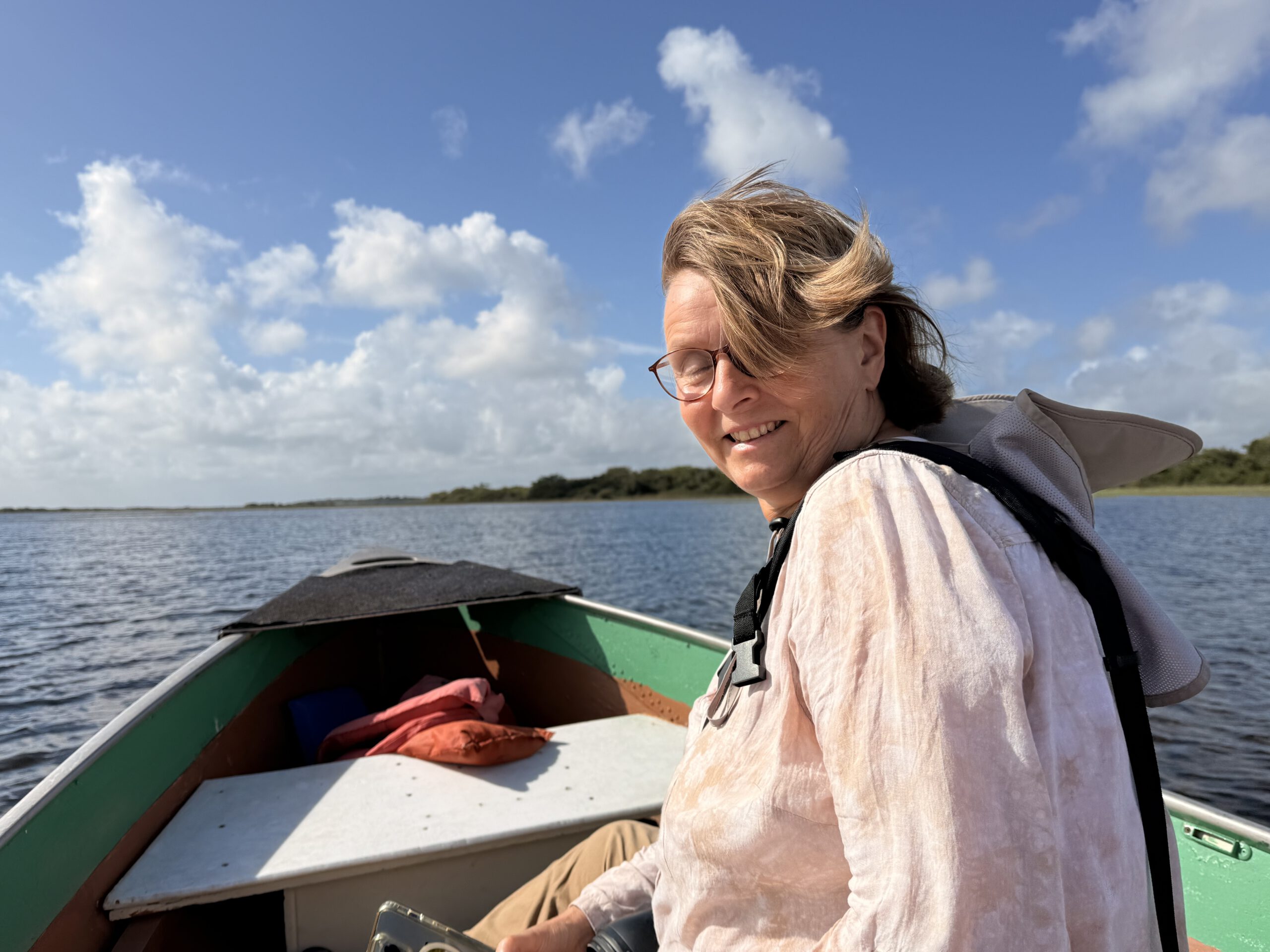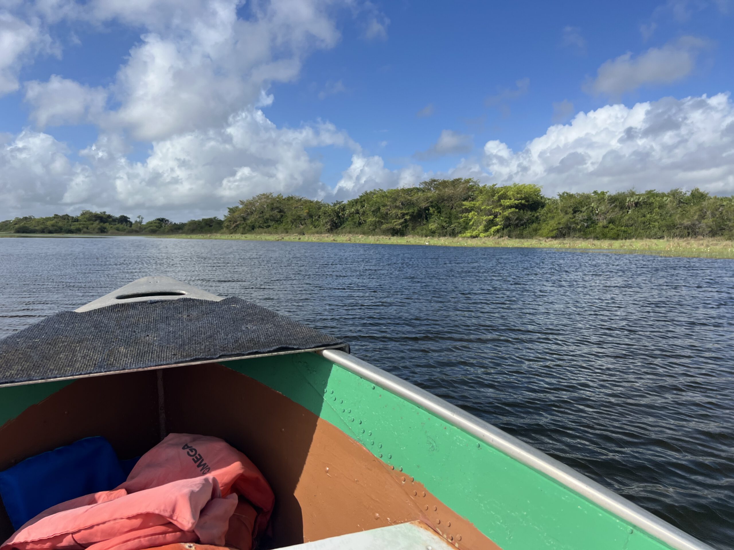 Wir hätten uns gestern Abend keinen Wecker stellen brauchen: durchdringende Vogelstimmen (KEIN leises Gezwitscher) werfen uns um kurz vor sechs Uhr aus dem Bett. Das passt! Denn wir sind auf 6:30 Uhr mit Rupert für eine 2 ½ -stündige Bootsfahrt auf der Lagune verabredet. Mit dabei ist Trudy, eine schätzungsweise 70-jährige Kanadierin, mit der wir gestern Nachmittag bereits ins Gespräch kamen.
