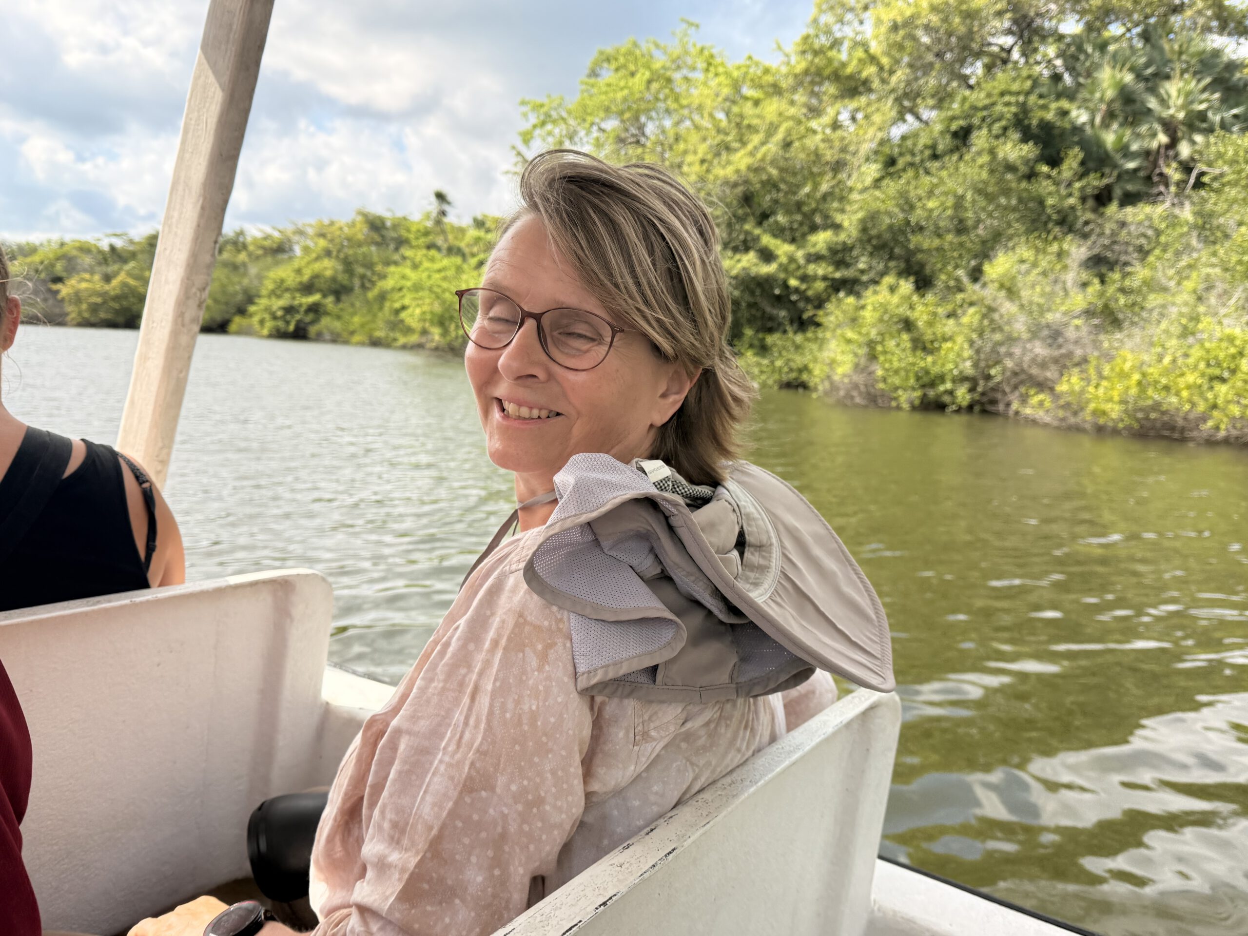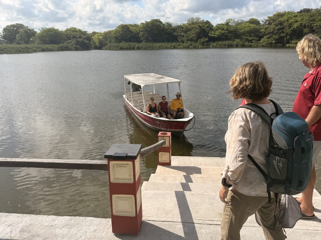 Für unsere Verhältnisse frühstücken wir heute relativ spät, nämlich erst um 8:00 Uhr. Der Grund dafür ist schnell erklärt: Unsere Bootsfahrt beginnt erst um 9 Uhr. Mit einem kleinen Motorboot fahren wir den New River hinauf, der sich durch eine schöne Dschungellandschaft schlängelt und direkt zur archäologischen Ausgrabungsstätte Lamanai führt. Schon die recht rasante Bootsfahrt über das Wasser macht die Ruinen-Tour zu etwas Besonderem. Der Fluss mäandert manchmal sehr stark, was bedeutet, dass das Boot sich mächtig in die Kurven legt, um dem Flusslauf zu folgen. Wir sehen ein paar Reiher, Eisvögel, etc. aber Birding ist auf der heutigen Fahrt ja nicht das vorrangige Ziel.