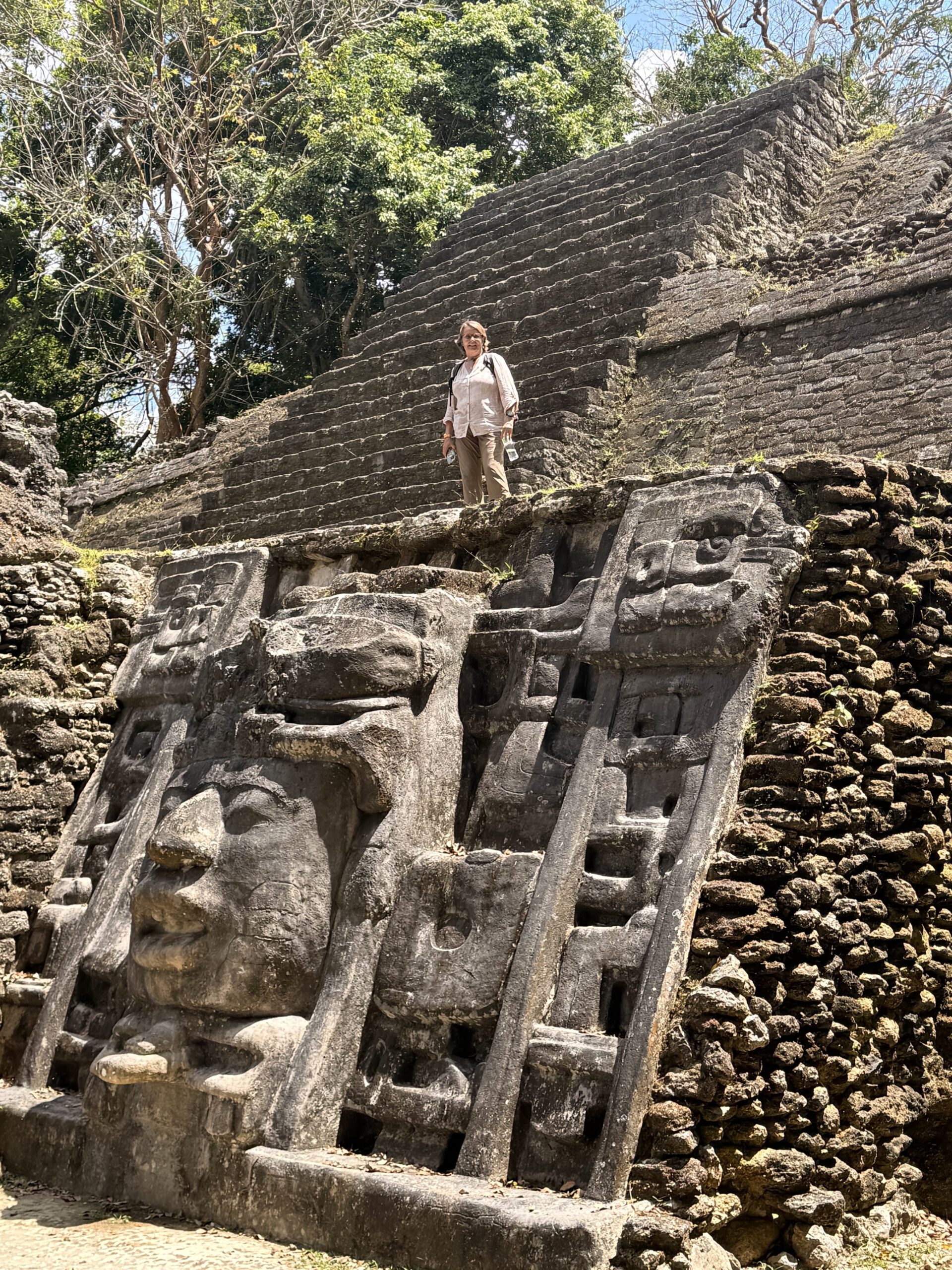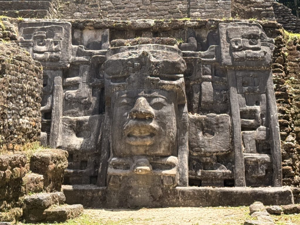 In Lamanai angekommen, ragen mehrere beeindruckende Tempel aus dem Grün des Dschungels. Besonders auffällig ist der Mask Temple, dessen Fassade von großen, kunstvoll gestalteten Steinmasken geschmückt wird. Den High Temple, eine der höchsten Maya-Pyramiden in Belize, besteigen wir natürlich auch und genießen den weiten Blick über den umliegenden Regenwald. Auch der Jaguar Temple, benannt nach den Jaguarmotiven an seiner Fassade, zeugt von der einstigen Bedeutung dieser Stadt.