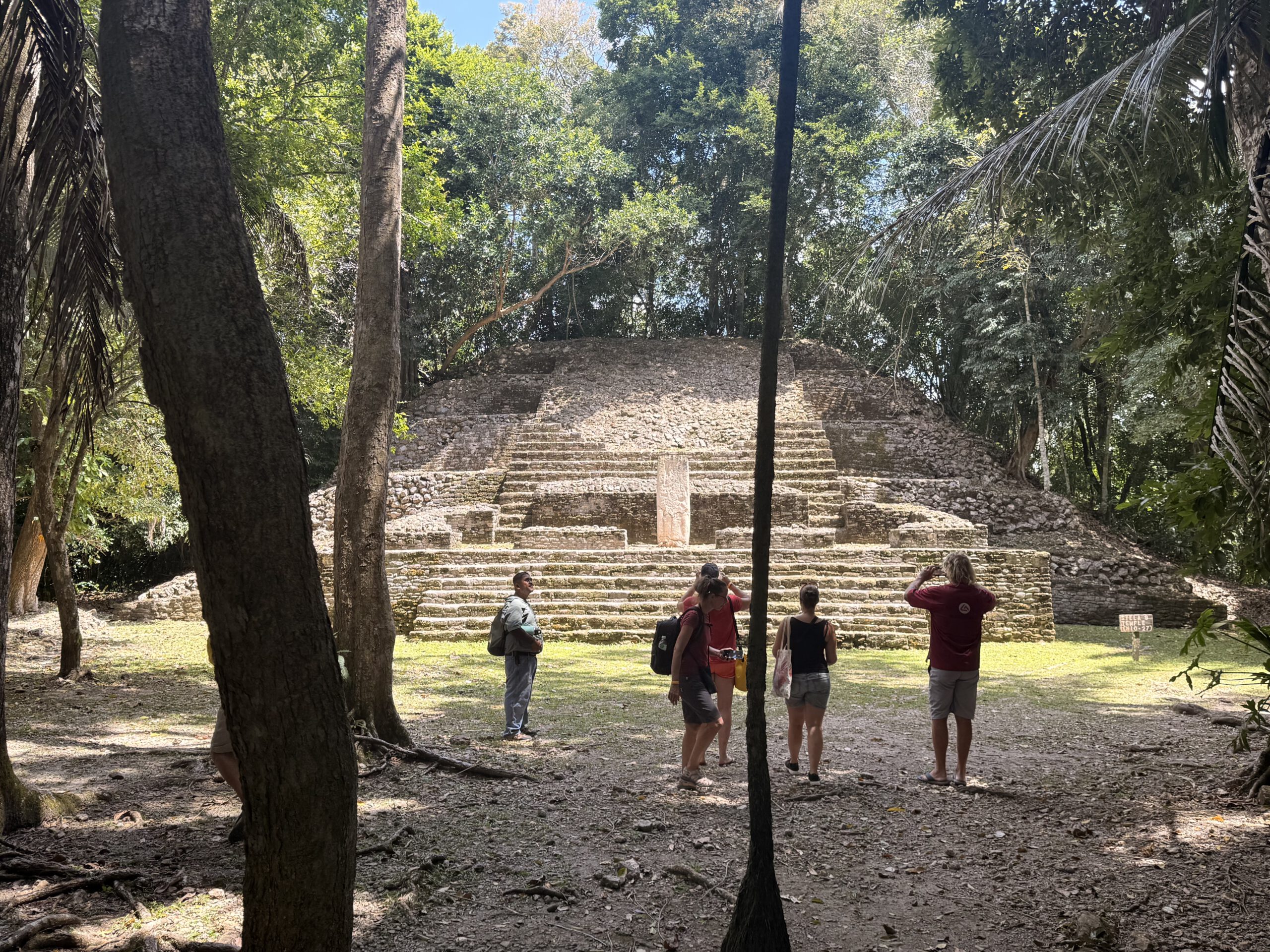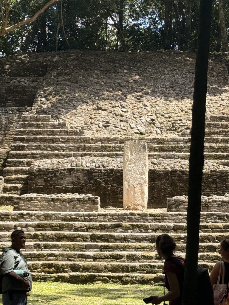 Zum ersten Mal besichtigen wir heute eine Maya-Stätte mit einem Guide. Die anderen Anlagen haben wir bisher alle auf eigene Faust erkundet. Schnell merken wir, wie hilfreich diese Führung für unser Verständnis der Maya-Kultur und ihrer Bauwerke ist. Unser Guide erklärt nicht nur die Geschichte und Bedeutung von Lamanai, sondern gibt uns auch viele interessante Einblicke in das Leben der Maya. Er spricht nicht nur über die Tempel und Ruinen, sondern erzählt auch viel über die Pflanzenwelt, über typische Nahrungsmittel, über religiöse Rituale und so weiter. Dadurch bekommen wir ein viel lebendigeres Bild davon, wie die Maya einst hier gelebt haben.