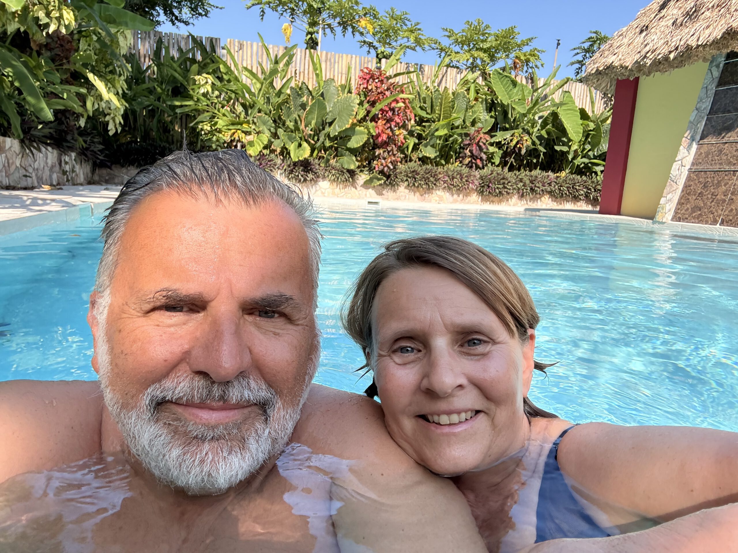 Gegen drei Uhr sind wir zurück bei unserer Unterkunft, woraufhin wir umgehend zur Erfrischung in den Pool „springen“. Später fahren wir nochmal nach Orange Walk Town und essen bei „Rustic Roof“ zu Abend.
