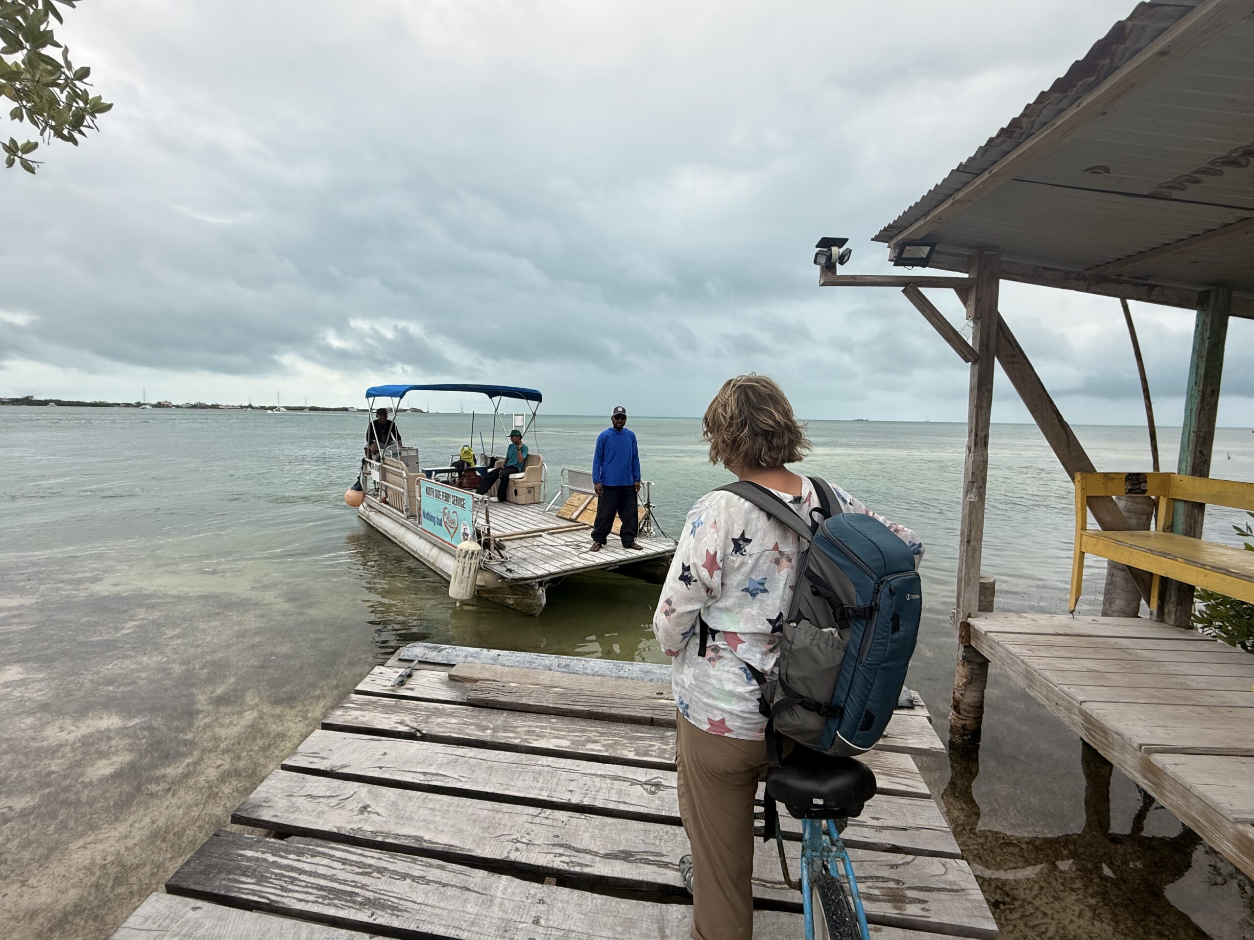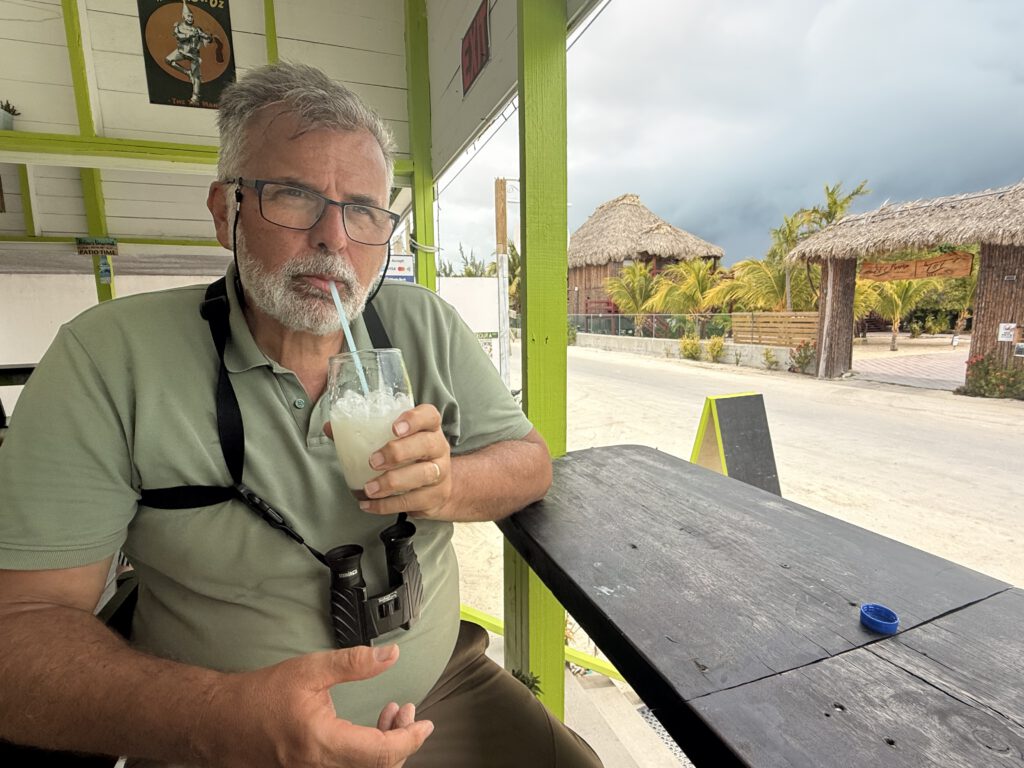 Mit einer kleinen Fähre setzen wir zur Nordinsel über und fahren von dort aus immer weiter nach Norden, mit dem Ziel „Bliss Beach“. Diesen Beach Club hatte uns vor ein paar Tagen ein französisches Paar wärmstens empfohlen. Heute hat Andrea die Kamera mit dem großen Objektiv im Gepäck, denn auch auf Caye Caulker gibt es noch einige neue Vogelarten zu entdecken. Wenngleich die Fahrräder alles andere als ergonomisch sind und weder über eine Gangschaltung verfügen, dafür aber mit einer Rücktrittbremse ausgestattet sind, kommen wir auf den durch den Regen aufgeweichten Wegen dennoch einigermaßen gut voran.