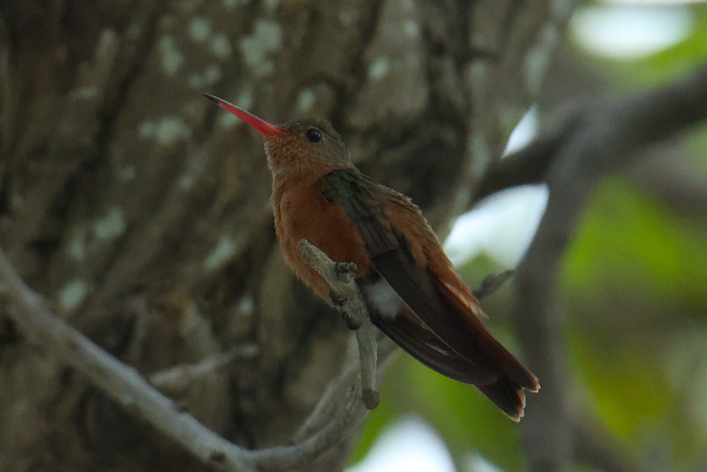 Wir stehen um 6 Uhr auf und machen uns kurz darauf auf den Rundweg zur Südspitze von CC. Ziel ist es, unsere Belize-Liste um einige Arten zu erweitern. Besonders hoffen wir auf den „Yucatan Vireo“ und den „Zimtkolibri“ – beides Arten, die hier zwar häufig vorkommen, uns bislang aber entweder gar nicht oder nur wenig fotogen begegnet sind.
