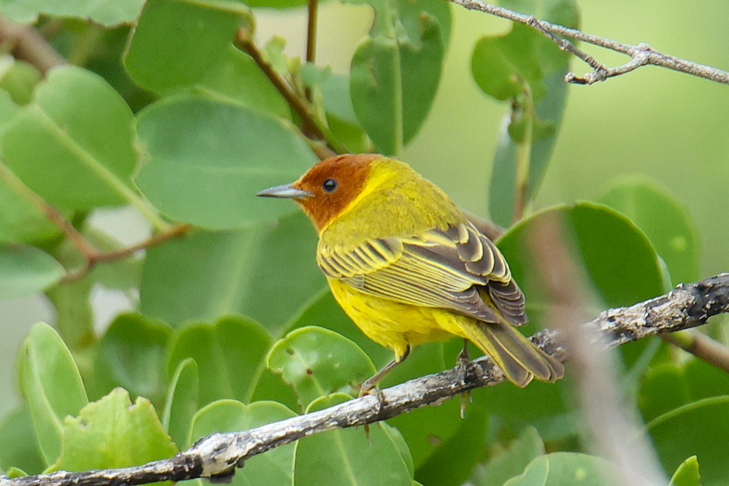 Wir legen die viereinhalb Kilometer zügig zurück, bleiben aber natürlich immer wieder stehen, sobald sich etwas in den Zweigen bewegt oder Vögel singen und rufen. Am Ende der Runde sind wir begeistert von unserer „Ausbeute“ : Den Yucatan Vireo erspäht Andrea tief im Unterholz, während er sich an einer Heuschrecke sattfrisst. Den Zimtkolibri entdecken wir schließlich ganz am Ende – bereits zurück im Ort – in einem Baum voller Blüten. Neben unseren beiden Wunschkandidaten können wir außerdem noch eine Reihe weiterer interessanter Arten beobachten.
