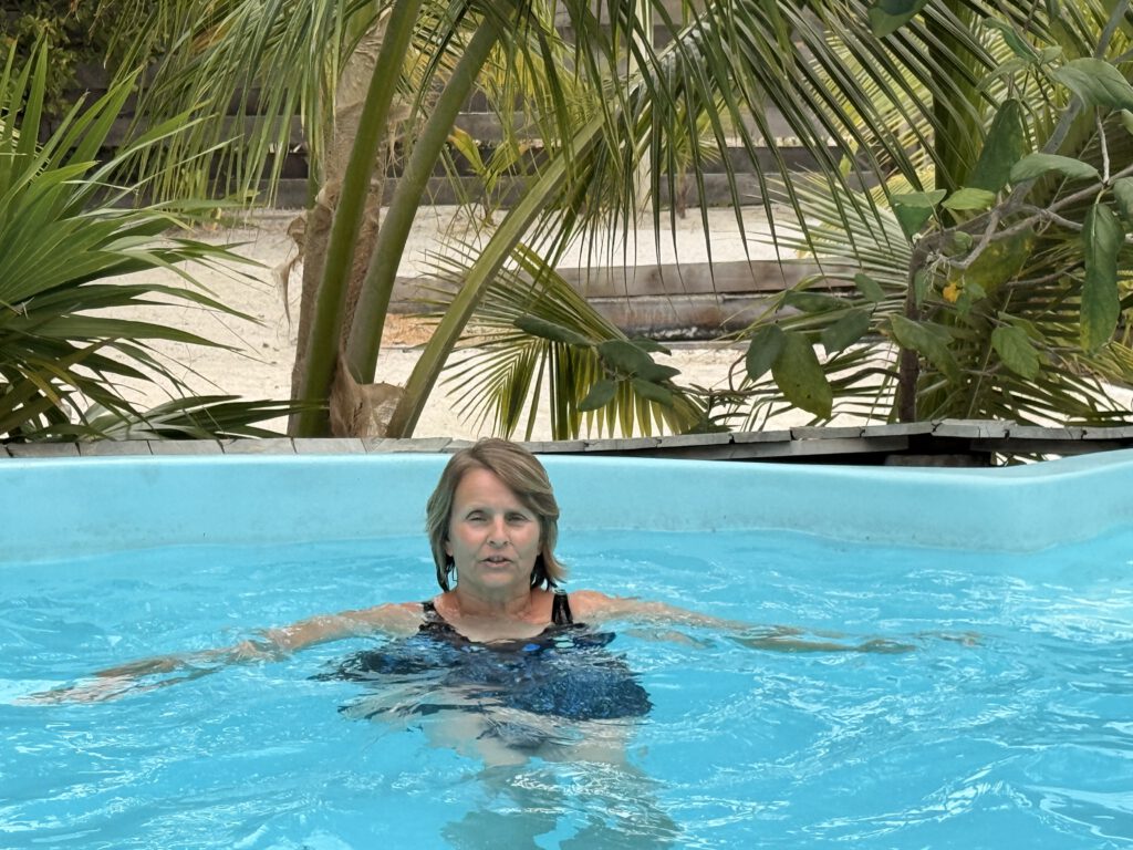 Die Mittagszeit und den frühen Nachmittag verbringen wir am Pool des Shipwreck Cove. Es wird zunehmend sonnig und erreicht angenehme 26 Grad im Schatten. Da es am Pool jedoch keinen Schatten gibt, ziehen wir uns, als es uns zu heiß wird, in unser klimatisiertes Zimmer zurück.