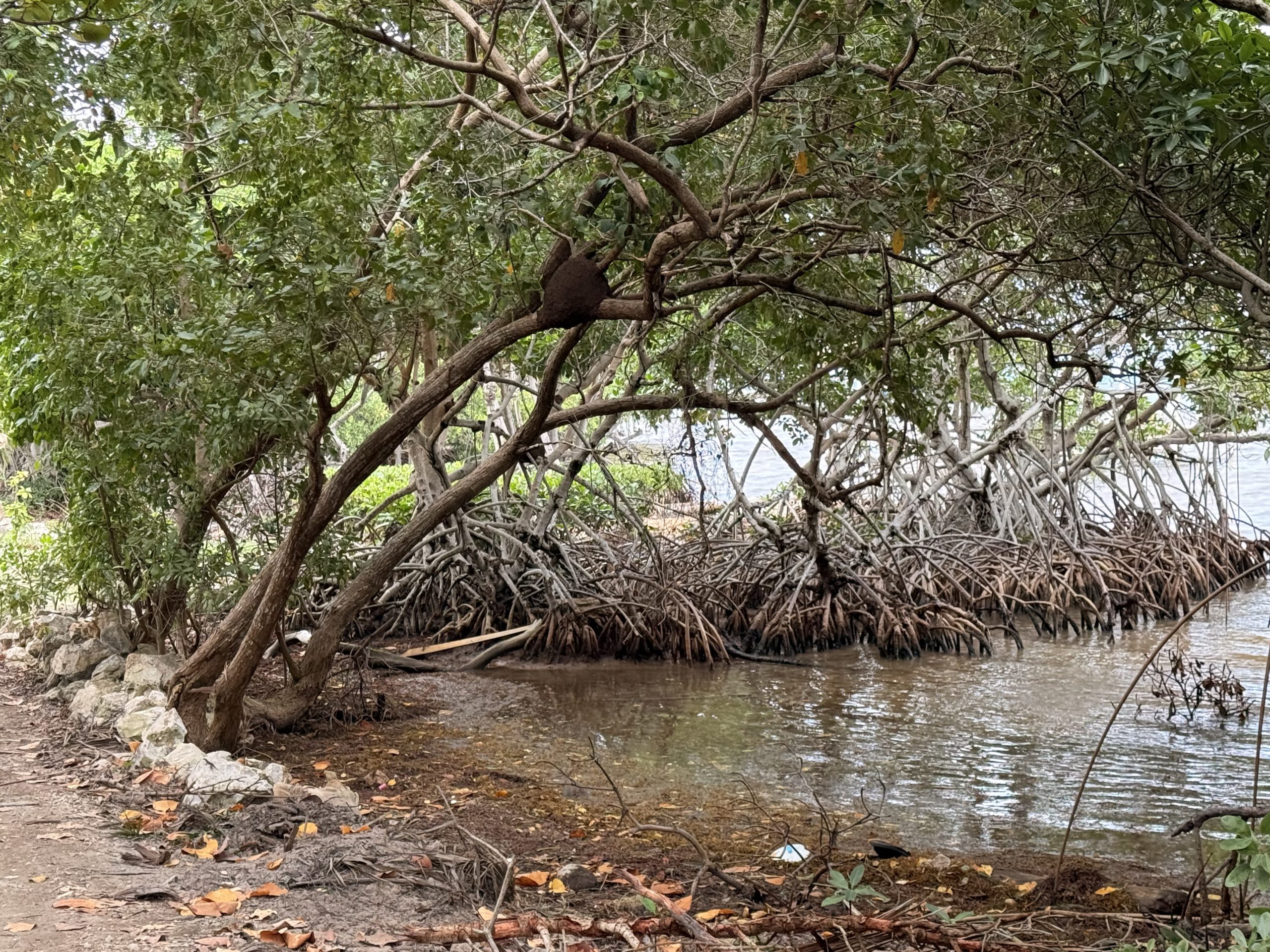 Wir genießen die angenehmen Temperaturen des frühen Morgens. Es ist bewölkt, und nur eine leichte Brise weht vom Meer herüber. Der Weg ist abschnittsweise wunderschön, an anderen Stellen jedoch abgrundtief hässlich, da stark verschmutzt. Leider scheint es vielen Einwohnern von Belize gleichgültig zu sein, ob Müll, Bauschutt oder Schrott die Landschaft verunstalten – so auch hier in dieser eigentlich so reizvollen Mangrovenlandschaft.