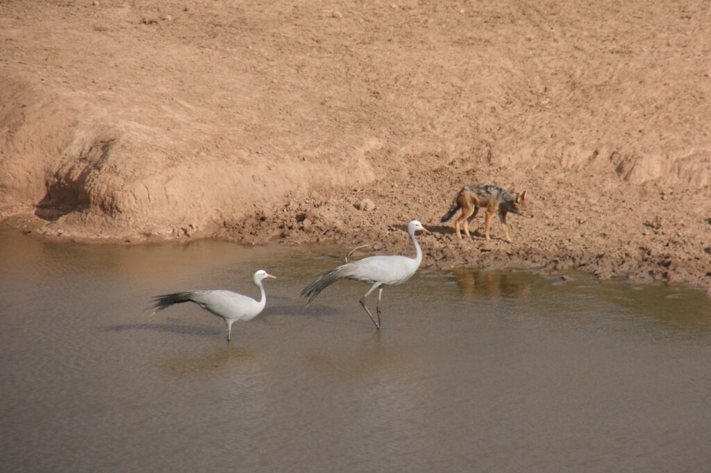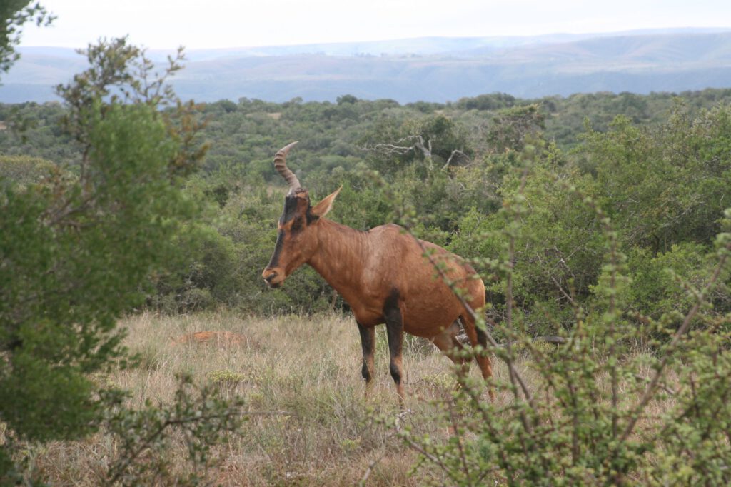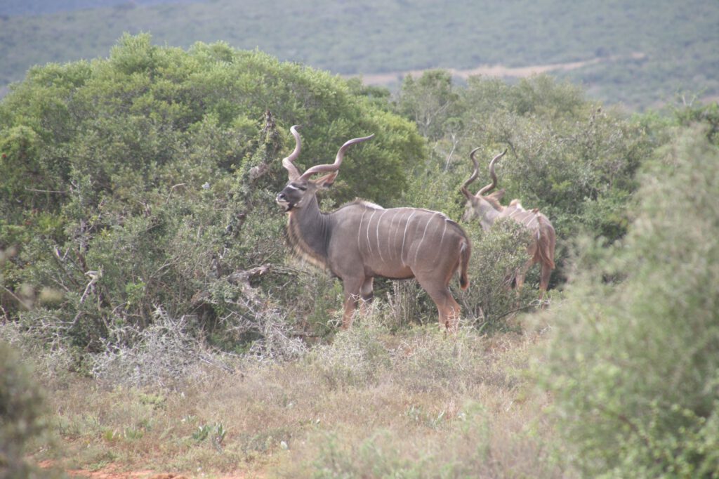 Was haben wir noch erspäht? Kudus, eine Kuhantilope (red hartebeest), Elenantilopen, eine Büffelherde an einem anderen Wasserloch, Schildkröten, Paradieskraniche und einige weitere Vogelarten.