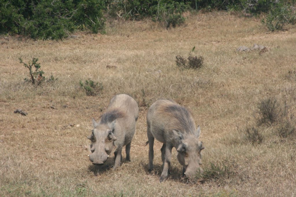 Nach wenigen 100 m im Park erspähen wir die ersten Warzenschweine. Die sieht man immer wieder im Reservat und sie sind auch nicht schwer auszumachen.