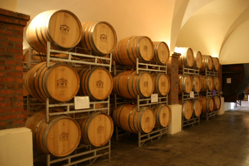 Leider zieht sich der Himmel schneller zu, als uns lieb ist und Gavin meint beim Frühstück, dass es heute wohl Regen geben wird. Das darf doch nicht wahr sein! Nun sind wir in der Region im Süden Südafrikas, in der es immer am wärmsten und schönsten ist und nun soll es regnen? Gut, Wein kann man auch bei schlechtem Wetter probieren. Nach Rücksprache mit Gavin steht die Route fest. Zunächst fahren wir einmal von Norden nach Süden die Hauptstraße von Paarl ab ( mit 11 km Länge soll sie die längste von Südafrika sein) und halten als erstes bei der ehemaligen Winzergenossenschaft von Paarl, kurz KWV. Wir haben Glück: gerade startet die deutsche Führung durch die Produktionsstätten. Wir und noch ein weiterer Gast sind die einzigen Teilnehmer. Witzigerweise ist der Guide auch Deutscher, ein Kölner, der sich in Südafrika zur Ruhe setzen wollte, dem es dann zu langweilig wurde und vier Jahre lang Önologie studierte (Wolfgang sinniert bereits drüber nach, ob das in gut 10 Jahren auch was für ihn sein könnte). Die Führung durch die riesigen Lagerhallen entlang von teils historischen, riesigen Weinfässern ist sehr interessant und ausgesprochen individuell! Die anschließende Weinprobe lässt auch keine Wünsche offen.