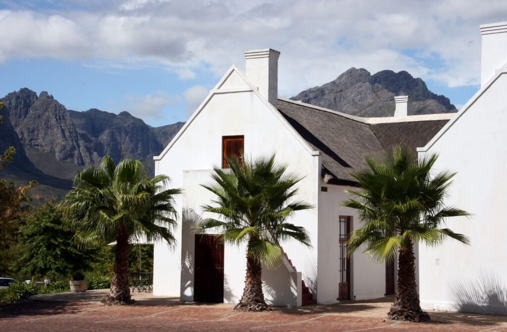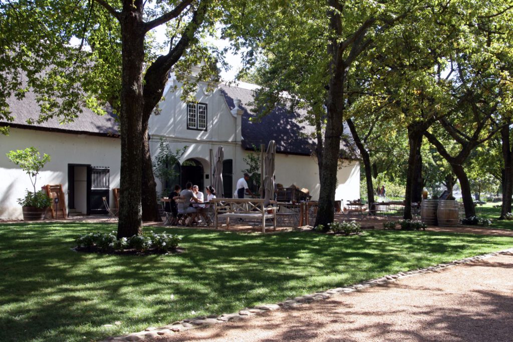 Auf dem kurzen Weg in Richtung Stellenbosch – der letzten Etappe unserer Reise – kommen wir beim berühmten Weingut Boschendal vorbei. Für eine Weinprobe ist es mir (10:30 Uhr) noch etwas zu früh. Aber dennoch lohnt der kurze Besuch des bereits 1685 gegründeten Weinguts, denn es liegt landschaftlich sehr reizvoll und die historischen Gebäude, der Park und die Gärten sind eine Augenweide.