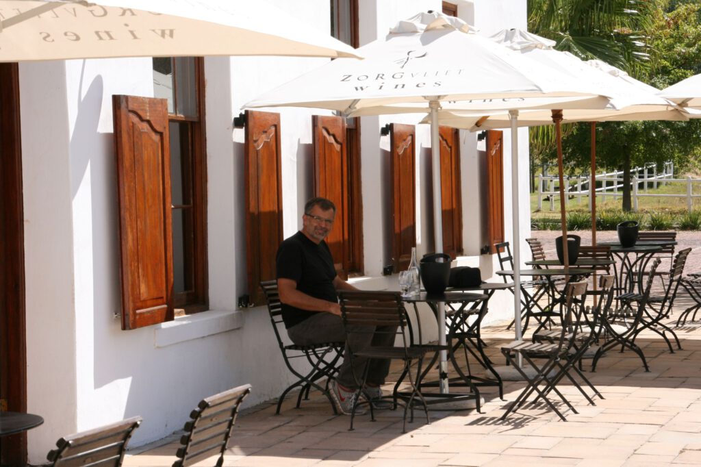 In der Region liegen nun die Winzer und ihre Anwesen dicht gedrängt beieinander. Also sind es nur wenige Fahrminuten bis zu Zorgvliet. Hier interessieren mich vor allem die Weißweine. Aber nicht nur der Gaumen genießt hier, sondern auch das Auge, denn auch Zorgvliet ist ein wunderschön im Baghoek Valley gelegenes Anwesen mit den typischen strahlend weißen Gebäuden, die heute in der Sonne ganz besonders gut zur Geltung kommen.