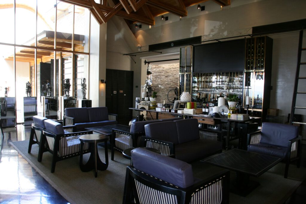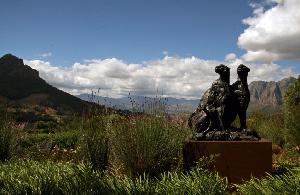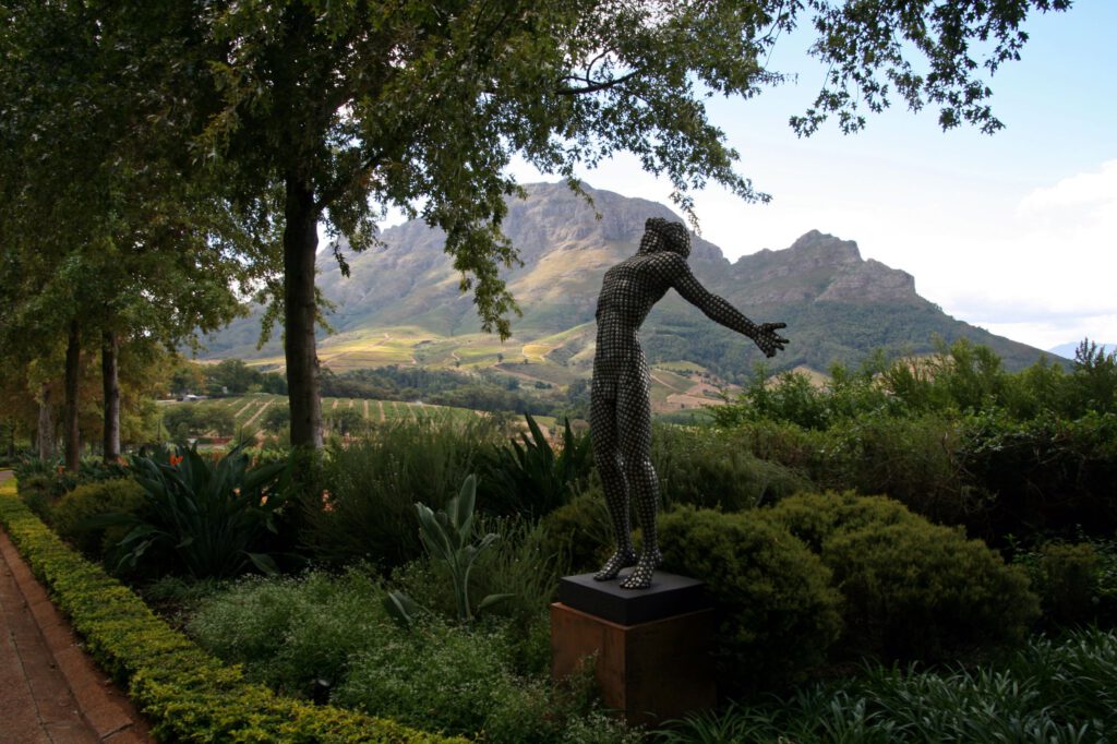 In der Nähe liegt nun auch Tokara, dem wir ebenfalls einen Besuch abstatten. Tokara hat ganz moderne Gebäude in Beton, Glas und Naturstein, die in stilvoller Architektur errichtet wurden. Zahlreiche Skulpturen und Gemälde werten das Bauwerk auf. Durch eine riesige Glasfront fällt der Blick in den Weinkeller mit seinen großen Stahltanks, in denen die Trauben vergoren werden. Hier essen wir eine Kleinigkeit zu Mittag. Das Restaurant bietet kreative, qualitativ hochwertige Küche und einen schönen Blick hinunter ins Tal auf die Stadt Stellenbosch. An den Lunch lassen wir ein Tasting anschließen. „Wir“ heißt – wie schon gestern -, dass Andrea sich mit dem Nippen an dem ein oder andern Gläschen begnügt und ich die Verkostung machen darf, wofür ich ihr sehr dankbar bin. Hier bei Tokara haben mir ein Sauvignan Blanc und der Director’s Reserve White besonders gut geschmeckt.