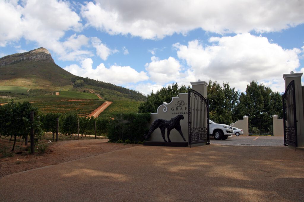 In direkter Nachbarschaft liegt das sehr exquisite Weingut Graff Delaire. Durch einen toll angelegten Garten bzw. Park gelangt man zu den Gebäuden und dem Restaurant, in dem auch die Tastings stattfinden. Auf der Terrasse verkoste ich 5 Weißweine und mache Notizen, welche ich vielleicht von Zuhause übers Internet bestellen werde.