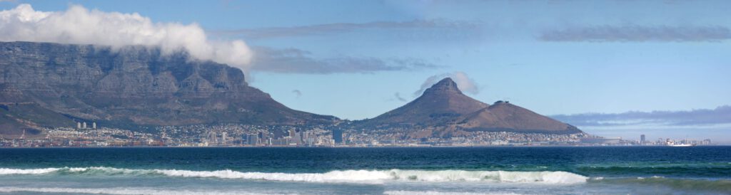 Und nachdem jetzt schönstes Strandwetter herrscht, schließen wir unseren Urlaub mit einem Sonnenbad am Strand von Milnerton ab. Milnerton ist ein nördlich gelegener Vorort von Kapstadt mit einem herrlichen Ausblick über die Tafelbucht auf den Tafelberg mit der Stadt darunter. Das ist sicherlich das Bild von Kapstadt, das uns vor allen anderen in Erinnerung bleiben wird.