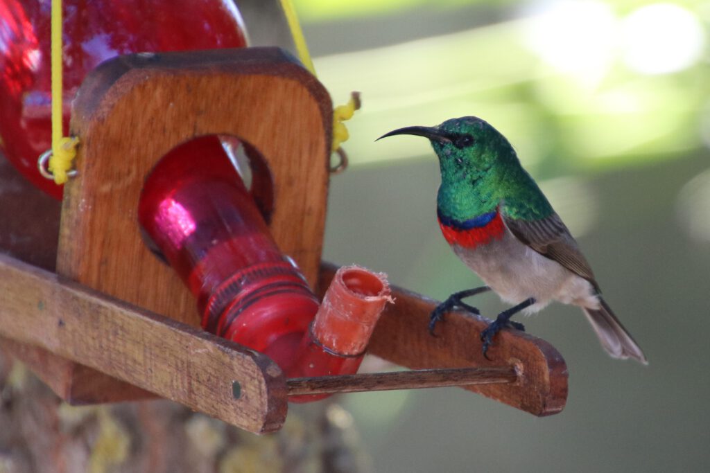 Es bleibt noch etwas Zeit, im Pool unseres B&B einzutauchen und die mit Zuckerwasser angelockten Sugarbirds zu beobachten, bevor wir uns zum bekannten Restaurant „Die Strandloper“ begeben.