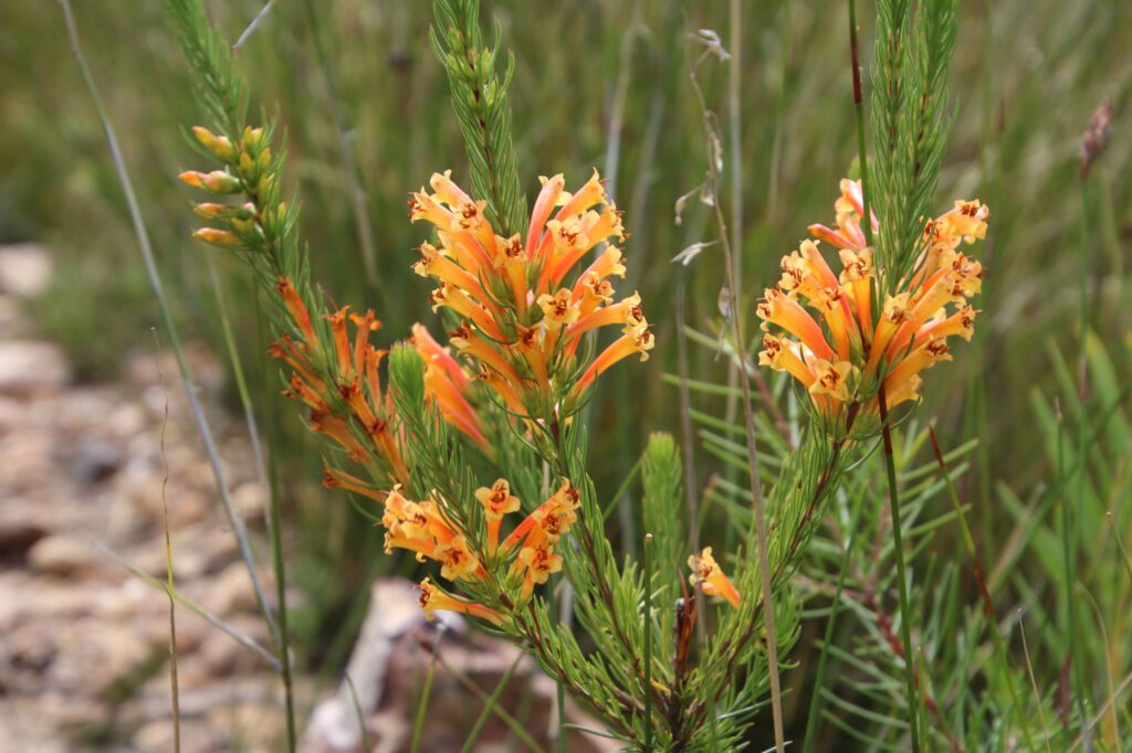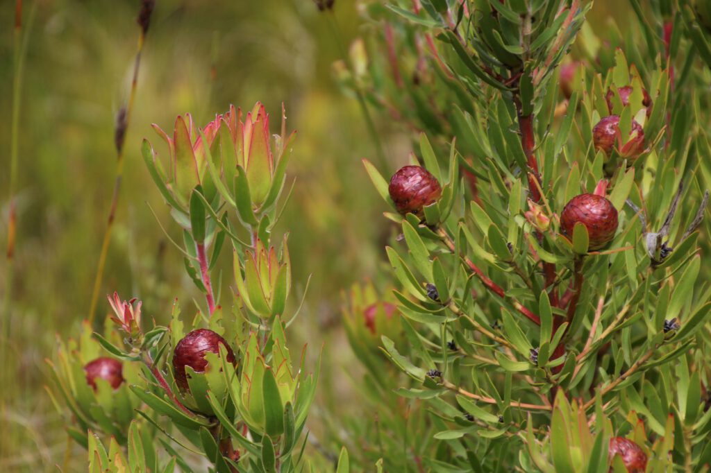Der Abstieg (auch 1,5 h) erfolgt auf dem gleichen Weg wie der Aufstieg durch die typische Fynbos-Vegetation: Erika, Protea und Gräser. Wir sind fasziniert, welche Vielfalt von Pflanzen uns hier begegnet und wieder können wir gar nicht genug bekommen von dieser einzigartigen Natur
