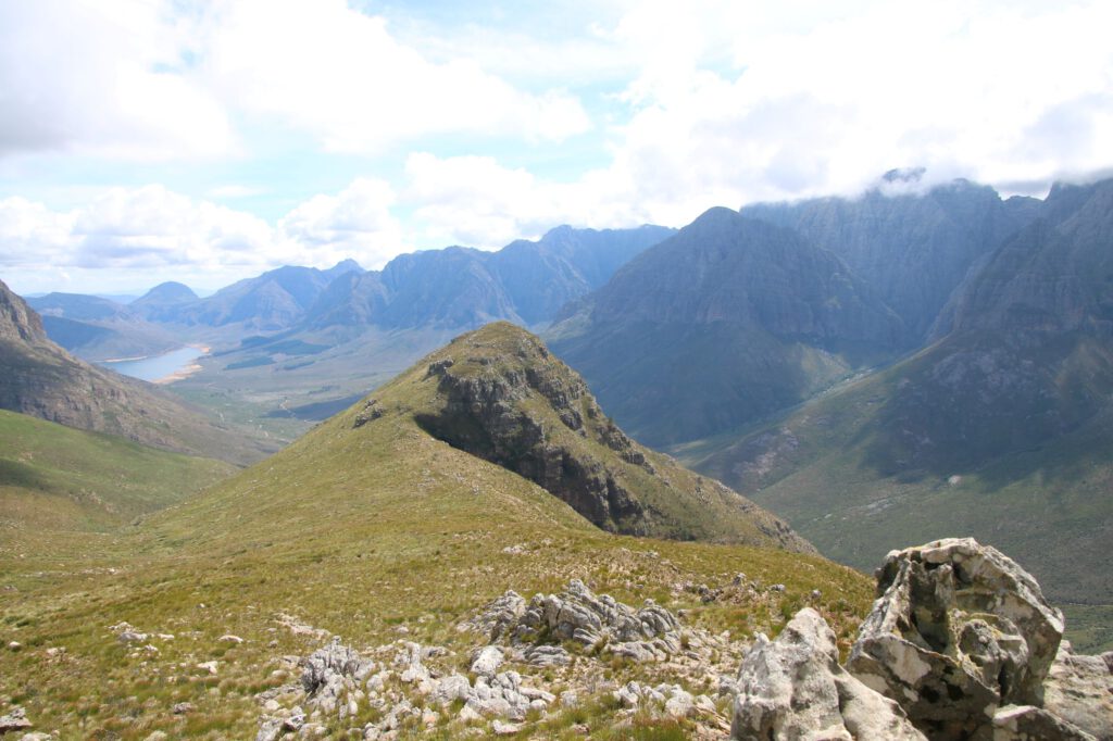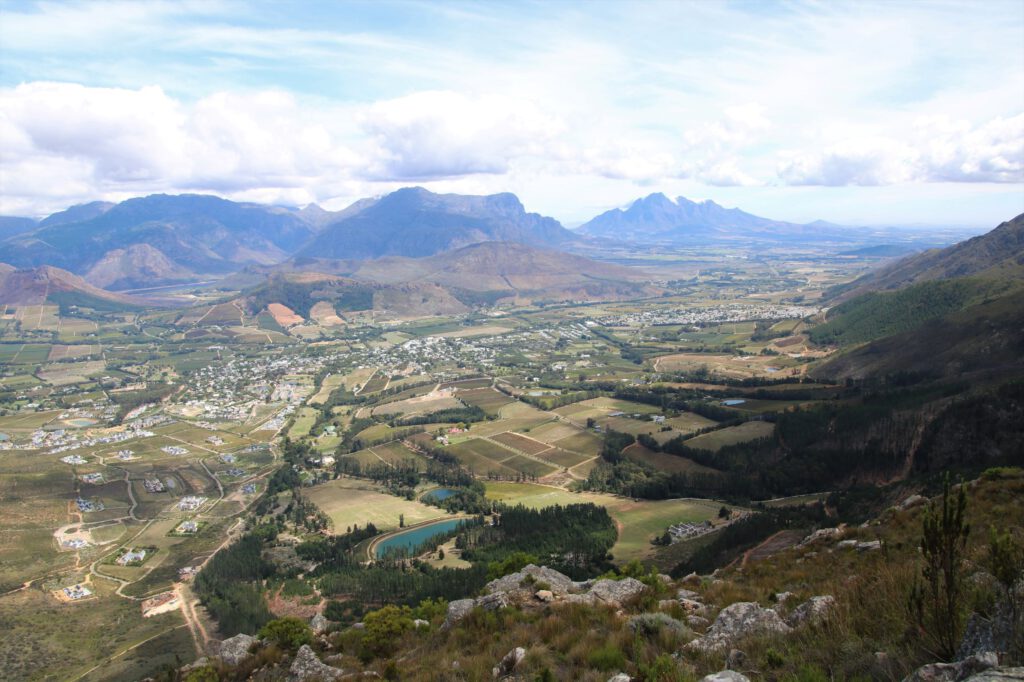 Auf der Passhöhe befindet sich der Wanderparkplatz für das Naturreservat Mount Rochelle. Dieses UNESCO Biosphären-Reservat wartet mit über 30 km Wanderwegen auf. Uns reichen heute die ca. 6 km des „Uitkyk-Trails“, der uns in 1,5 Stunden auf einen der Berggipfel des Gebirgszugs führt, von dem wir einen schönen Rundblick haben und von dem aus uns das Nachbartal zu Füßen liegt.