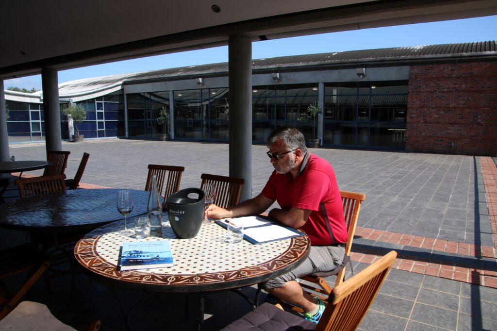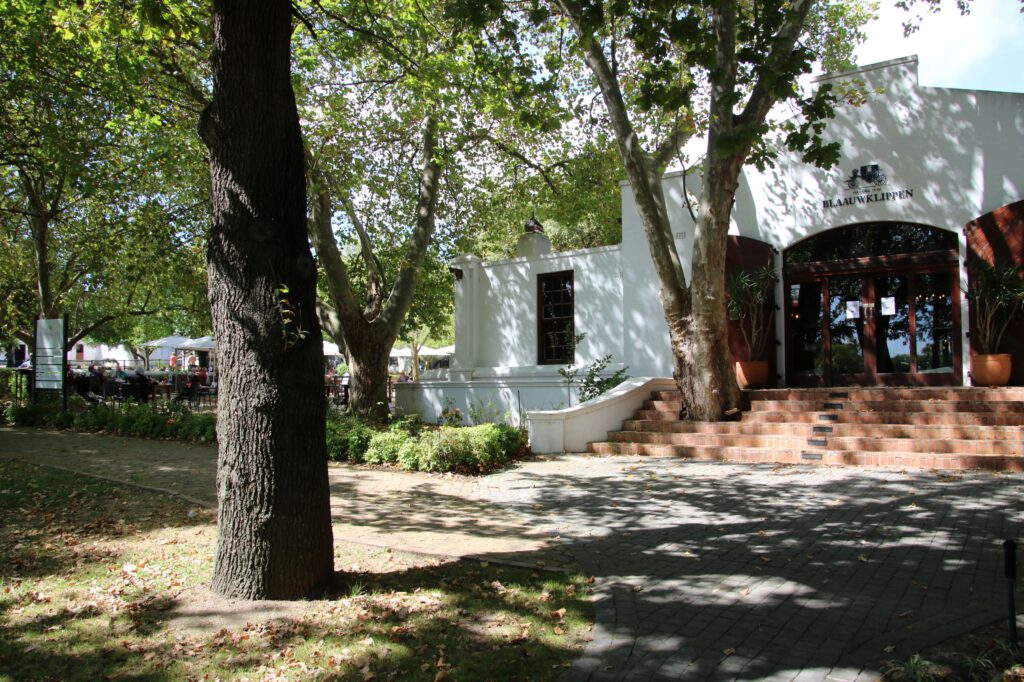 Heute sind wir etwas gehandicapt: Wolfgang hat sich wohl einen leichten Magen-Darm-Virus eingefangen. Daher lassen wir es etwas ruhiger angehen, brechen erst gegen 10:00 Uhr zum Weingut Dornier auf, ca. 15 Fahrminuten entfernt, am südlichen Ortsrand von Stellenbosch. Wir waren bereits 2015 kurz dort, hatten aber keine Weine verkostet, sondern nur den für seine extravagante Architektur bekannten Weinkeller angesehen, der zu dem in direkter Nachbarschaft liegenden typischen kapholländischen Herrenhaus einen wunderbaren Kontrast bildet.