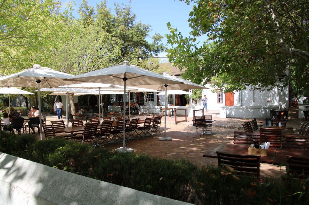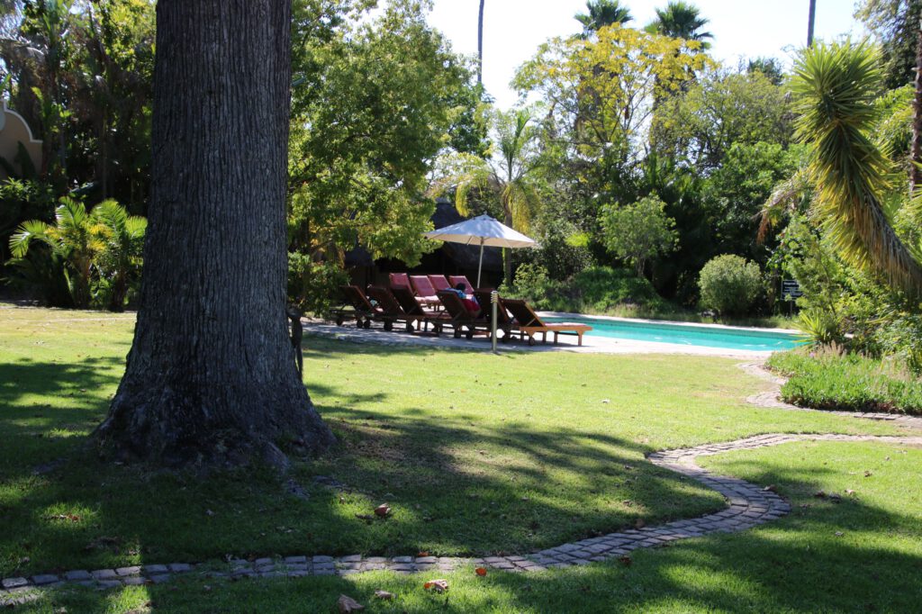 Zurück in der Unterkunft legen wir uns für ein paar Stunden an den Pool, lesen und chillen und machen uns anschließend ausgehfein: wir fahren nochmals nach Stellenbosch City, schlendern ein wenig durch die Straßen und lassen uns im Innenhof eines lässigen Lokals, dem Wijnhuis, auf einen Drink nieder. Ein schöner Abschluss unseres viertägigen Aufenthalts in der Weinregion Stellenbosch. Morgen ziehen wir in diesem Urlaub zum letzten Mal um, in die „Mother City“ Cape Town!
