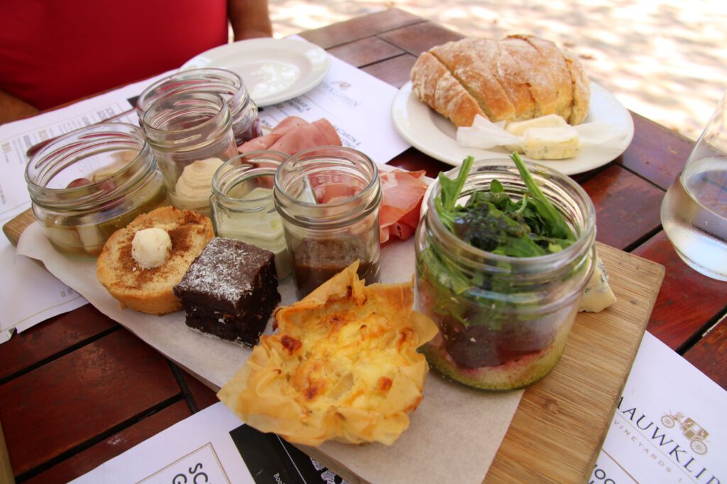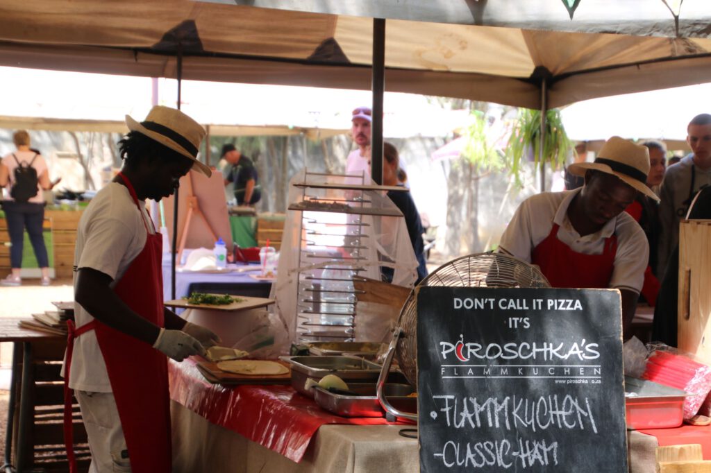 Nur 10 Minuten Fahrt benötigen wir, um zum Weingut Blaauwklippen zu gelangen, auf dessen Gelände JEDEN Sonntag der sogenannte Family Market stattfindet. Rolf Zeitvogel, deutscher Önologe und Geschäftsführer des Weinguts, hatte uns 2015 bei unserem Besuch auf dem Weingut von dem Markt vorgeschwärmt, auf dem allerlei Köstlichkeiten, aber auch Kunsthandwerk etc. angeboten wird, alles „homemade“. Entfernt erinnert uns die Szenerie, Menschen, die entspannt plaudernd an urigen Tischen unter Schatten spendenden Bäumen sitzen, an das Heckenfest unseres Musikvereins in Steinmauern und sind völlig von den Socken, als wir unter den Speiseangeboten Flammkuchen entdecken (auch in Steinmauern der Renner!).
