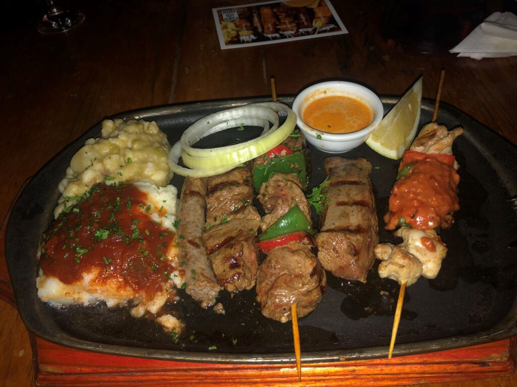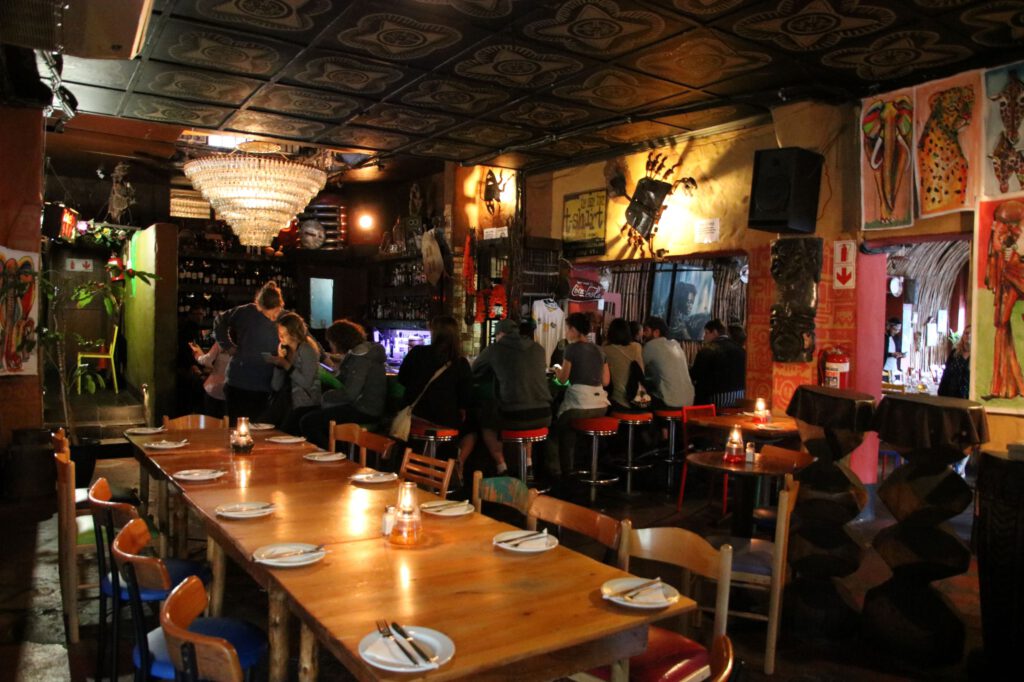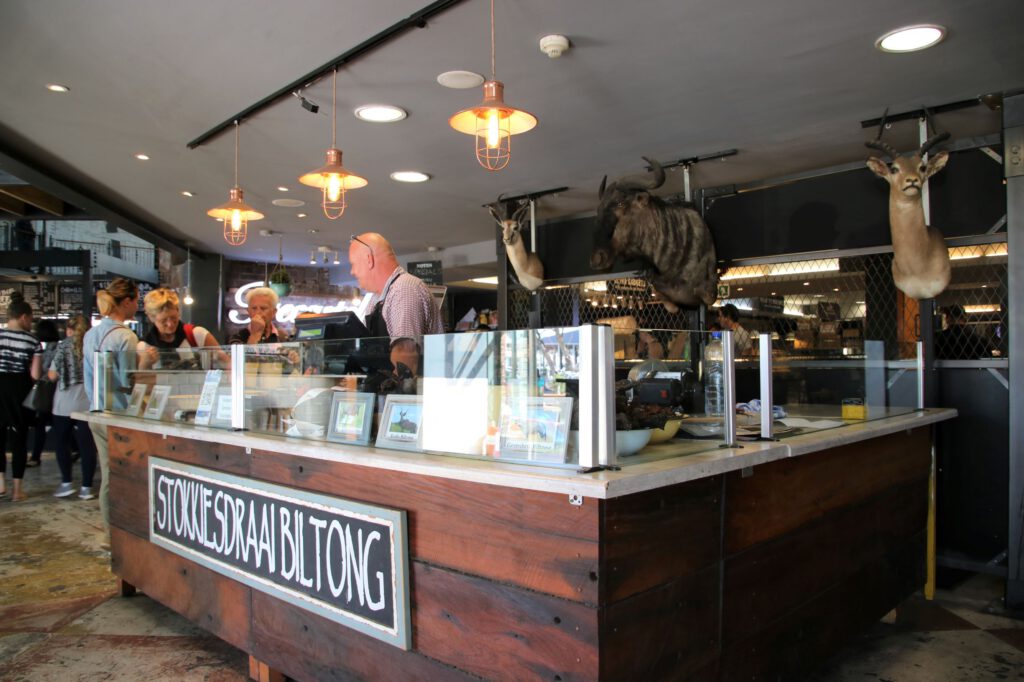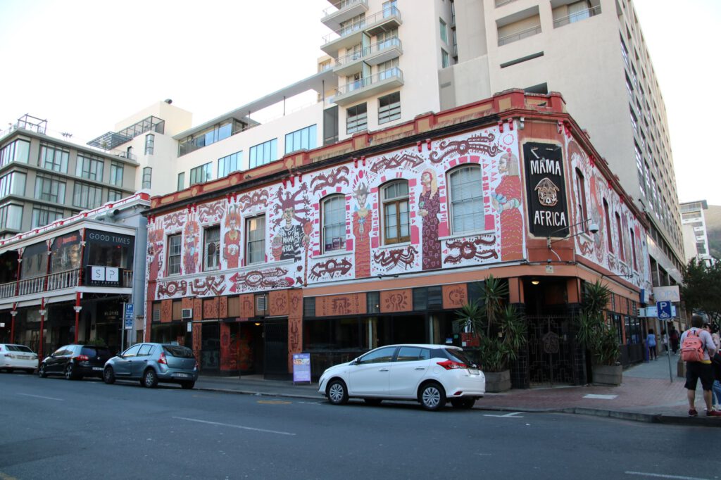 Wir besichtigen anschließend den Company’s Garden und finden uns um 18:30 an der Bar des Restaurants Mama Africa ein. Um 19 Uhr beginnt hier die tägliche afrikanische Live-Musik und auch unser Dinner. Als Vorspeise teilen wir uns einen Feta-Biltong-Avocado-Salat. Der Hauptgang ist bei uns beiden die Mixed-Grill-Platte mit Fleisch vom Kudu, Springbock, Krokodil und Strauß und einer Boerewors, einer kräftig gewürzten Rind-Schweine-Wild-Bratwurst.